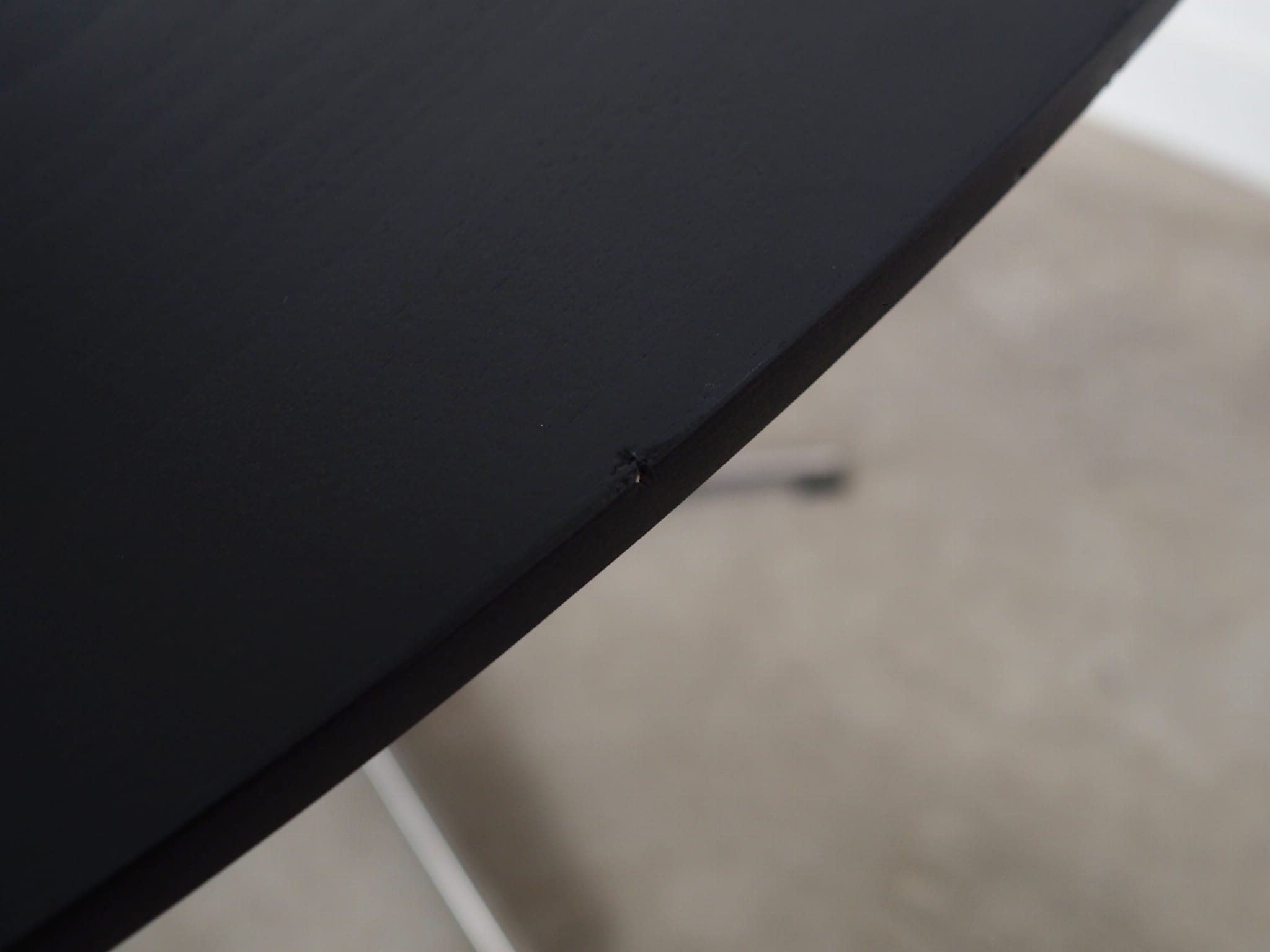 Table top made of ash, lacquered in black. Base made of metal.