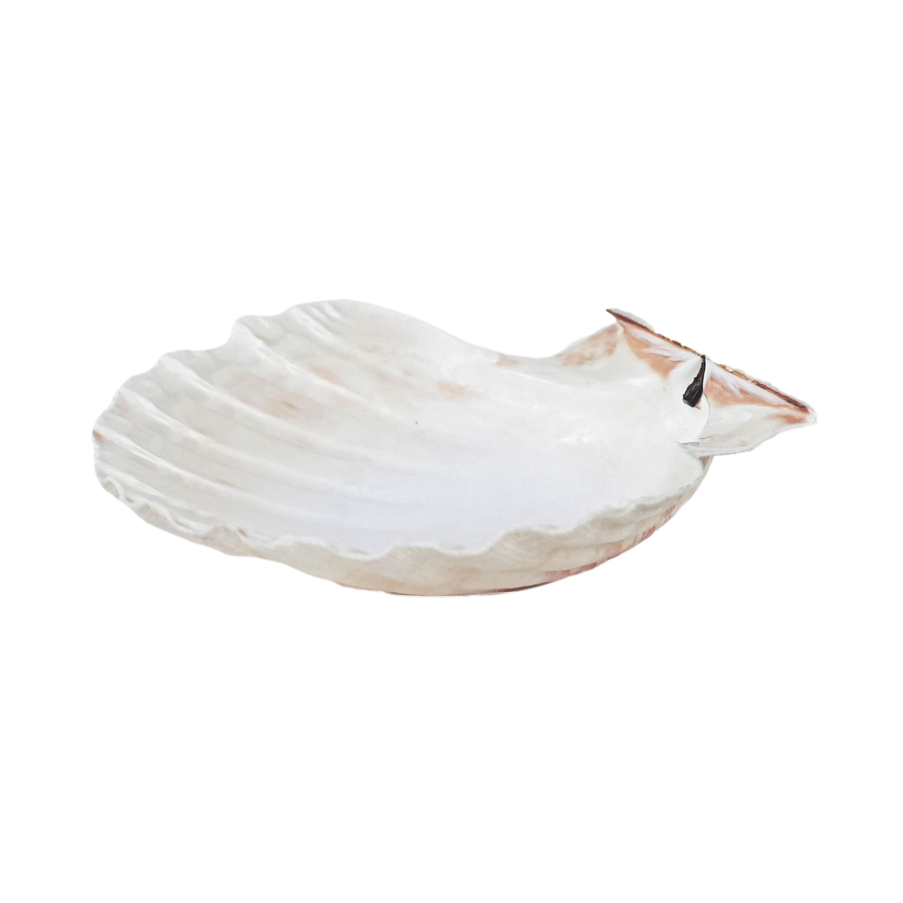 A striking, natural shell with a sculptural, fan-shaped form and a pearlescent sheen. Subtle transitions between cream, white and delicate honey tones create an exceptionally elegant, organic accent in any interior. It beautifully reflects light and looks exceptionally elegant in both minimalist settings and coastal or mid-century styles. Perfect as a decorative mini jewellery tray, a spa-style soap dish, or a small container for trinkets on a console table or dressing table.