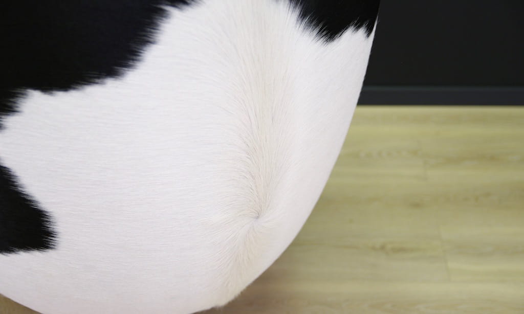 Condition: Armchair after professional restoration. It is covered in unique natural leather in white and black patches from Sørensen Leather, used by Fritz Hansen in an exclusive series of bespoke products.
