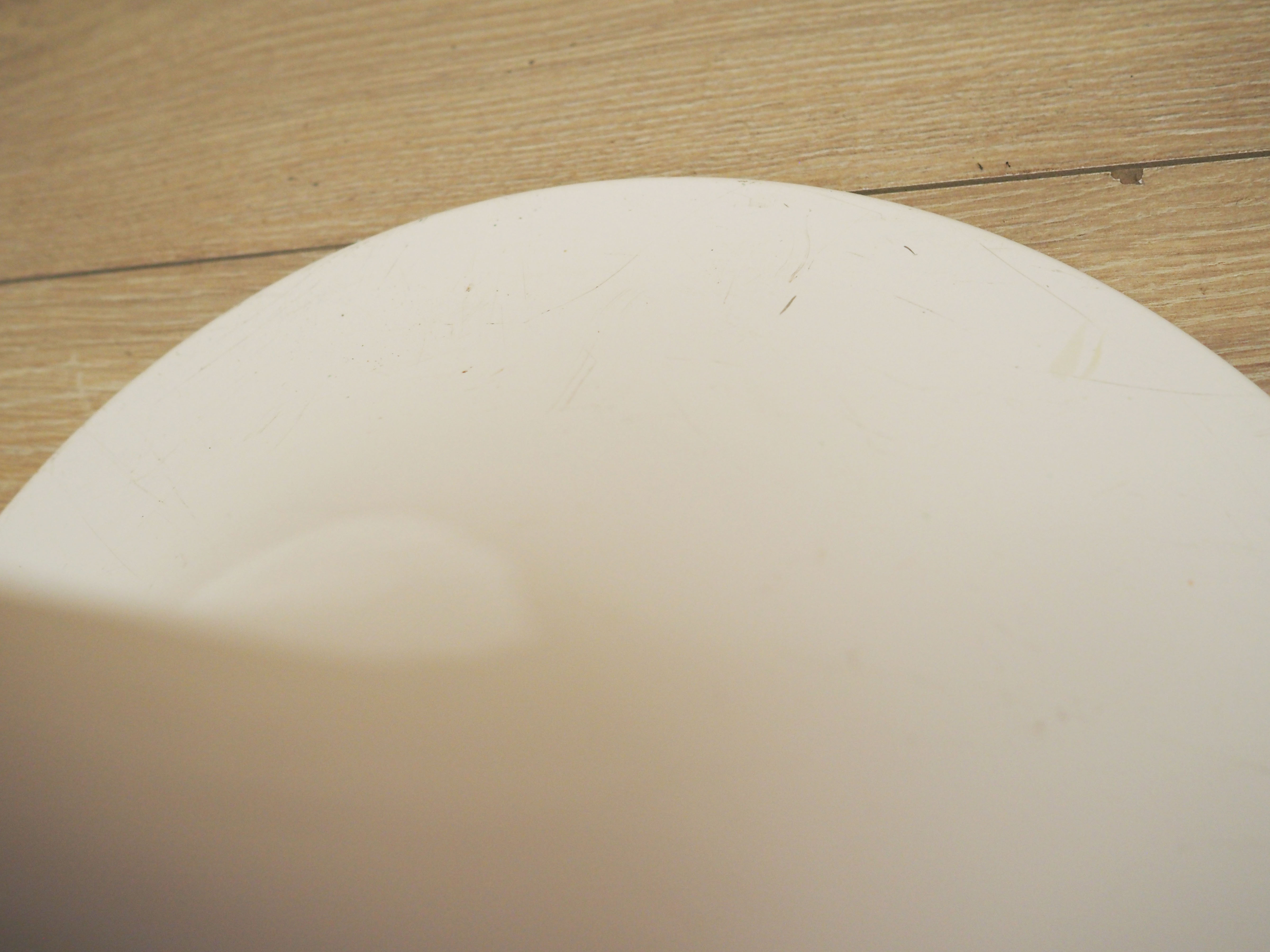 Made of metal and plastic in white. The unique construction is not only a design element, its main purpose is to diffuse light in order to create a pleasant interior mood.