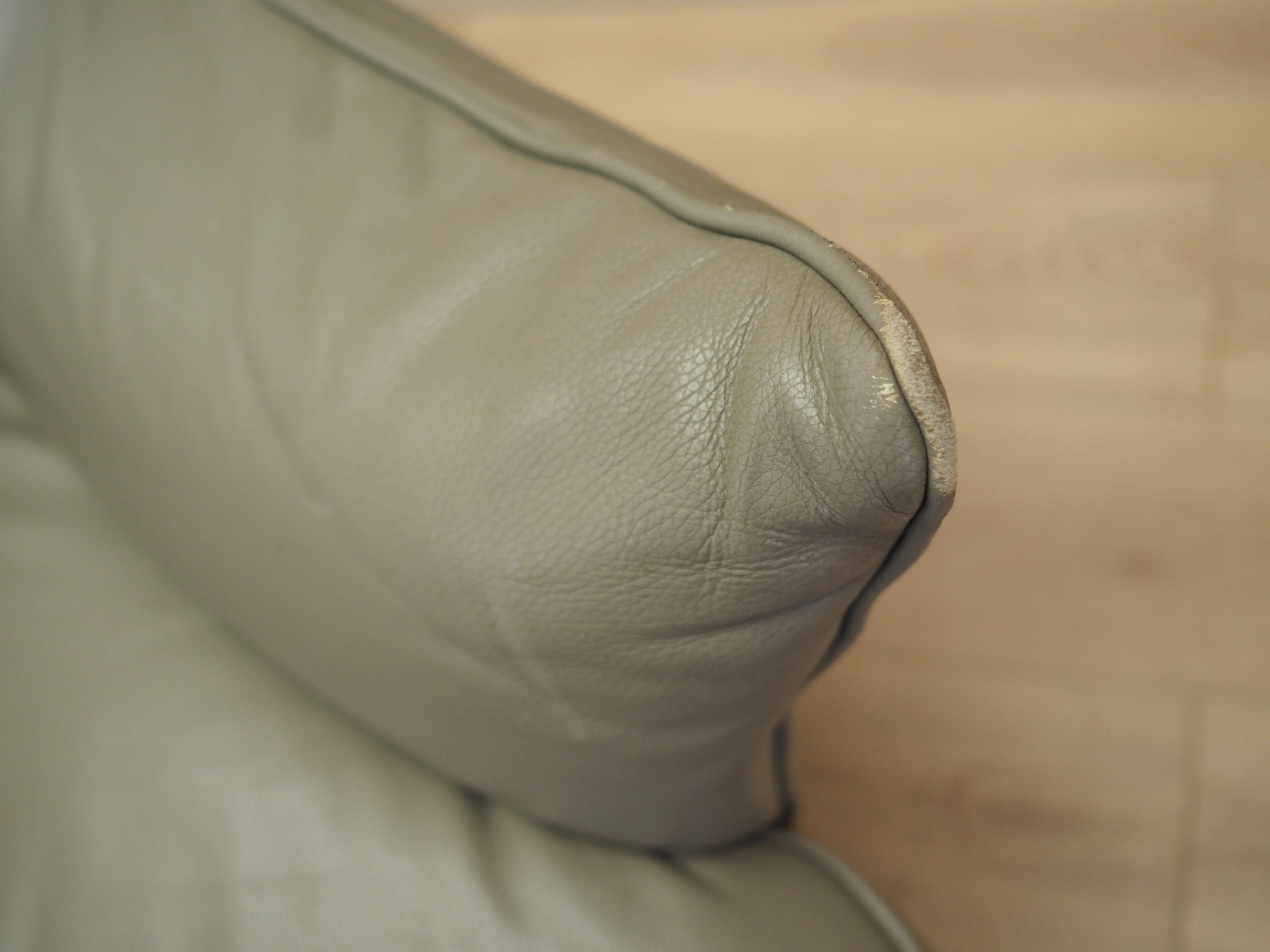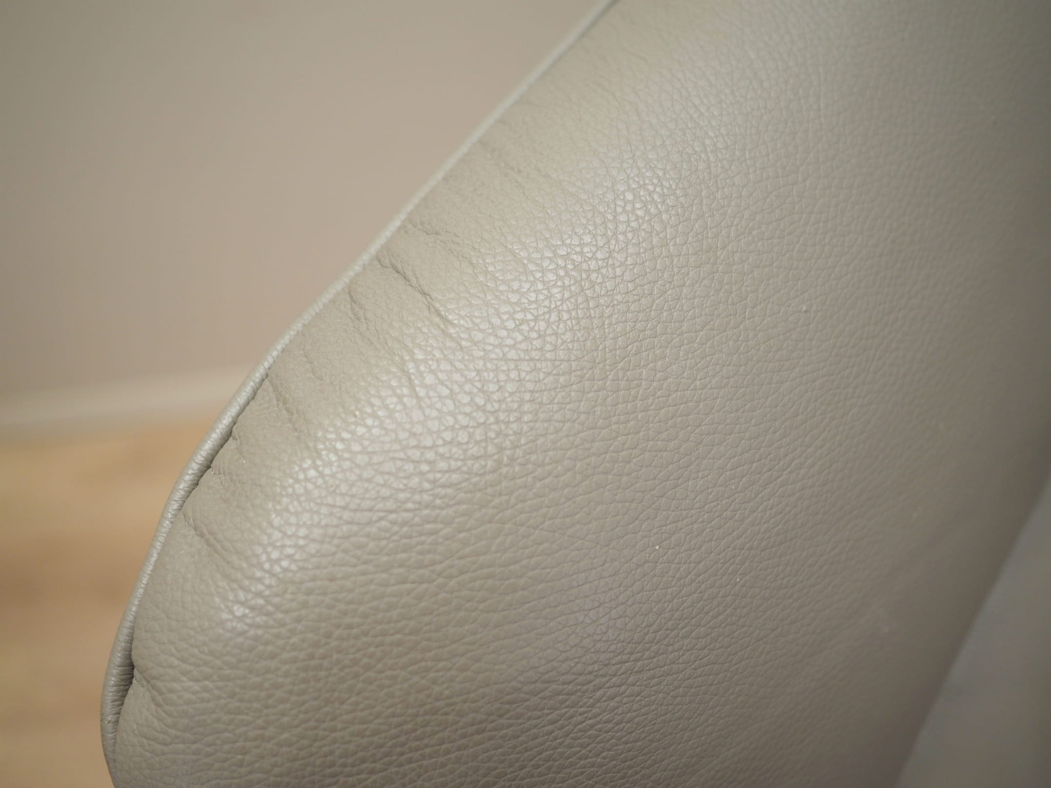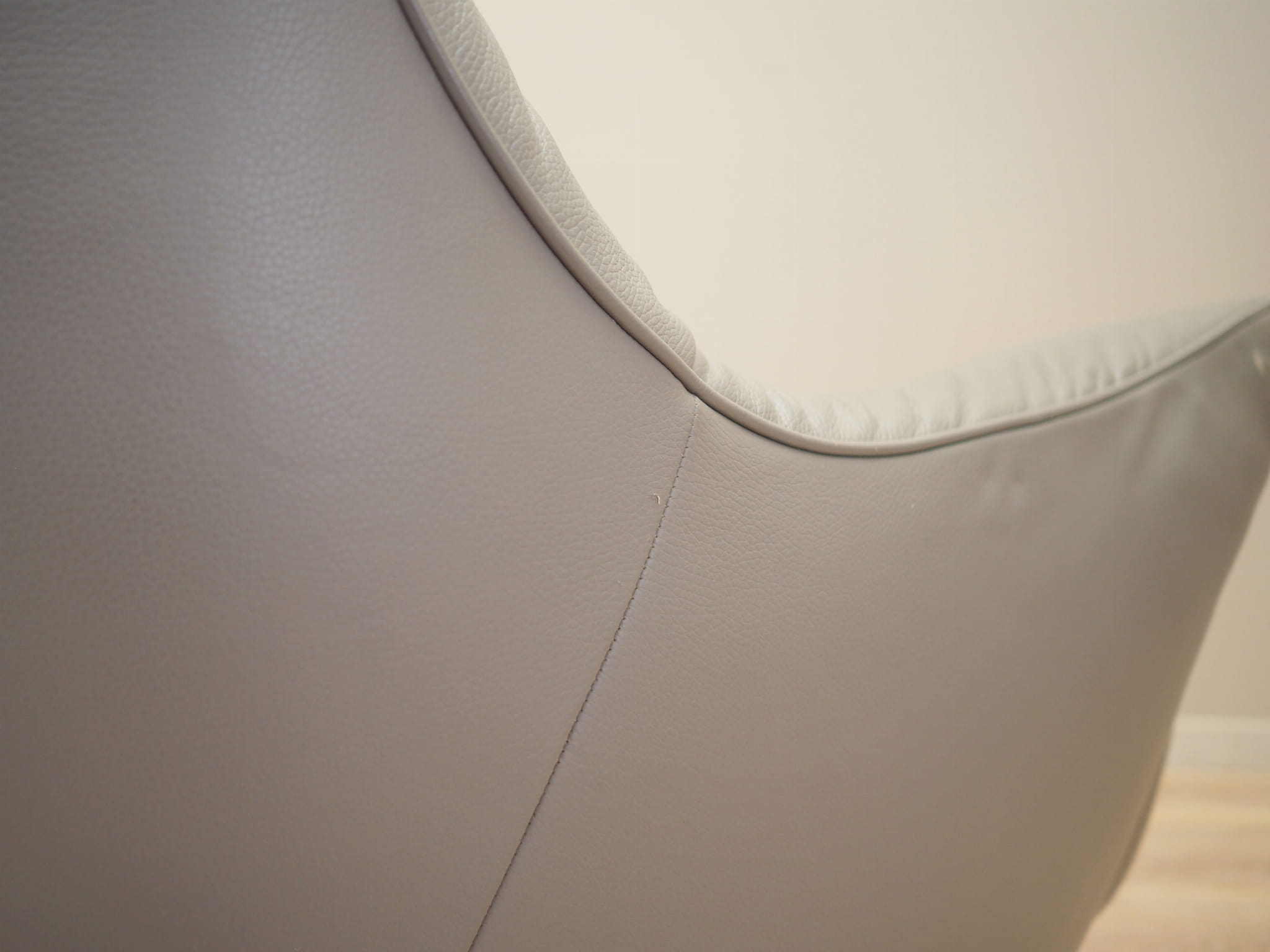 The armchair is covered with original high quality natural leather. The leather was made in grey. The structure of the armchair is made of wood and metal.