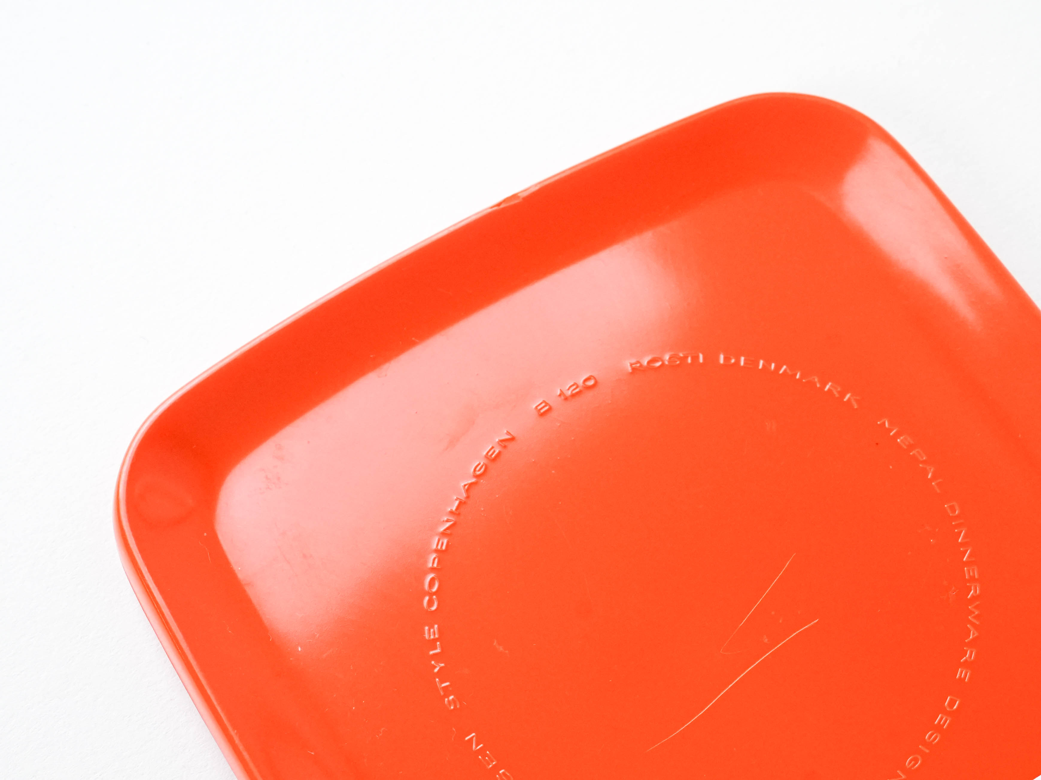A vintage Rosti cutting board in a vibrant orange color. Its simple, minimalist form is typical of 1970s Scandinavian design, crafted to be lightweight, practical, and durable. It’s a perfect fit for a retro kitchen.