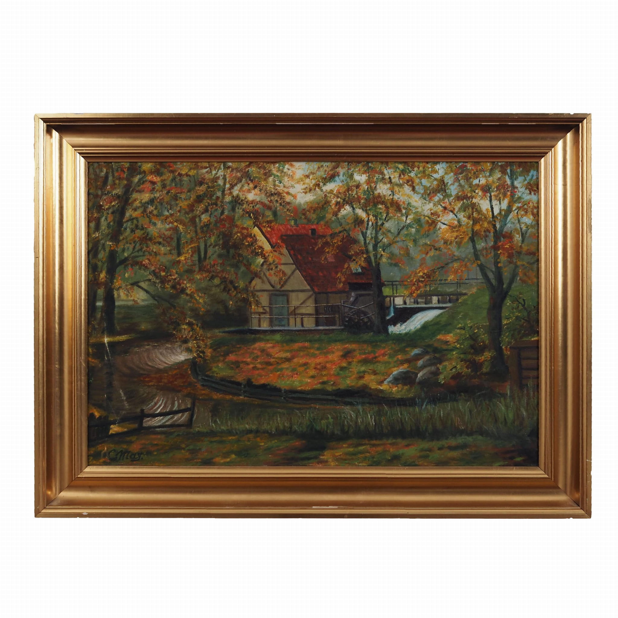 Painting „The Forest Mill”, Scandinavian design, 1970s, by C. May
