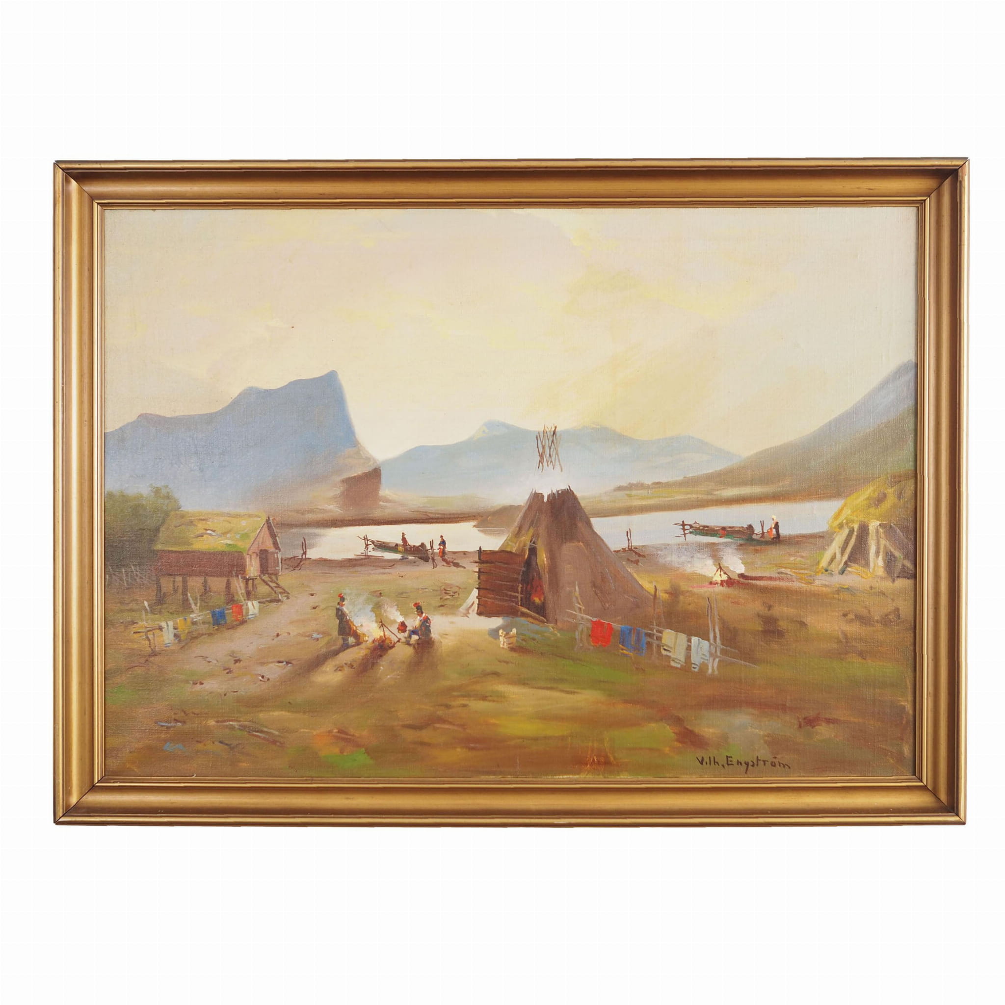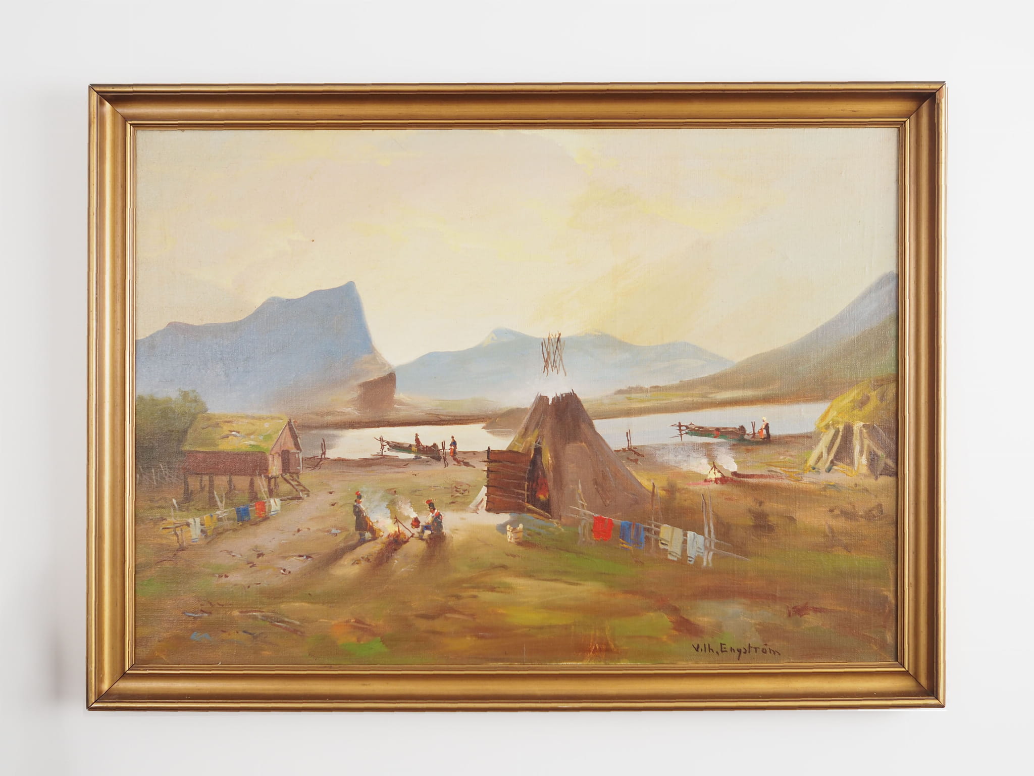 Painting „The Riverside Camp”, Scandinavian design, 19th century, by Vilhelm Oskar Engström