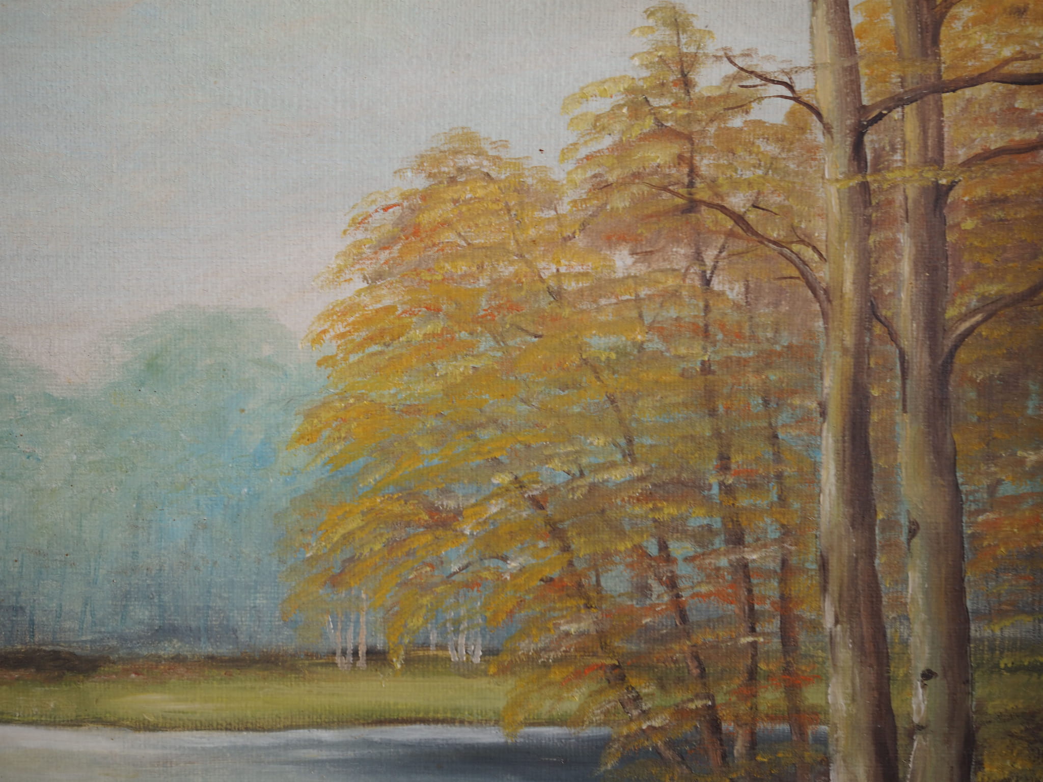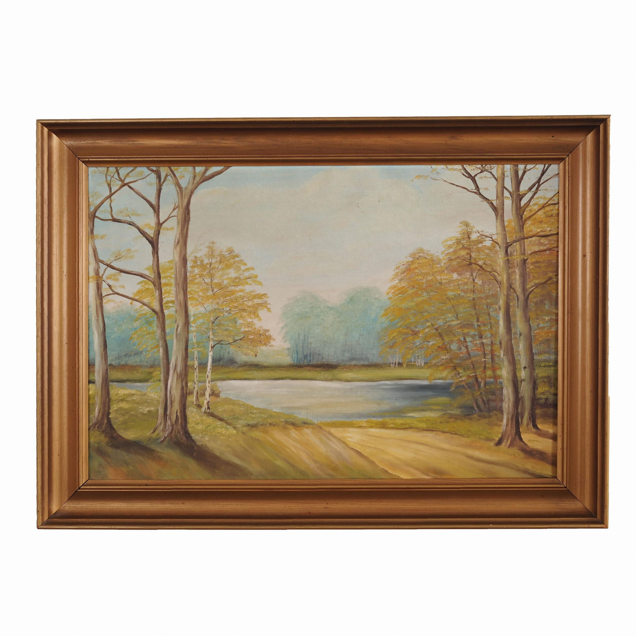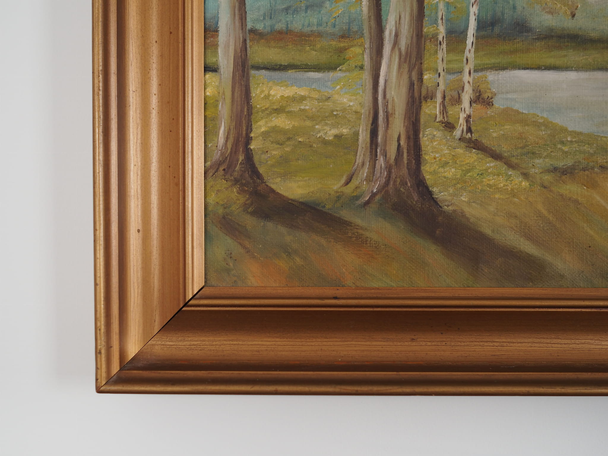 Painting „Two Birch by the Pond”, Scandinavian design, 1970s