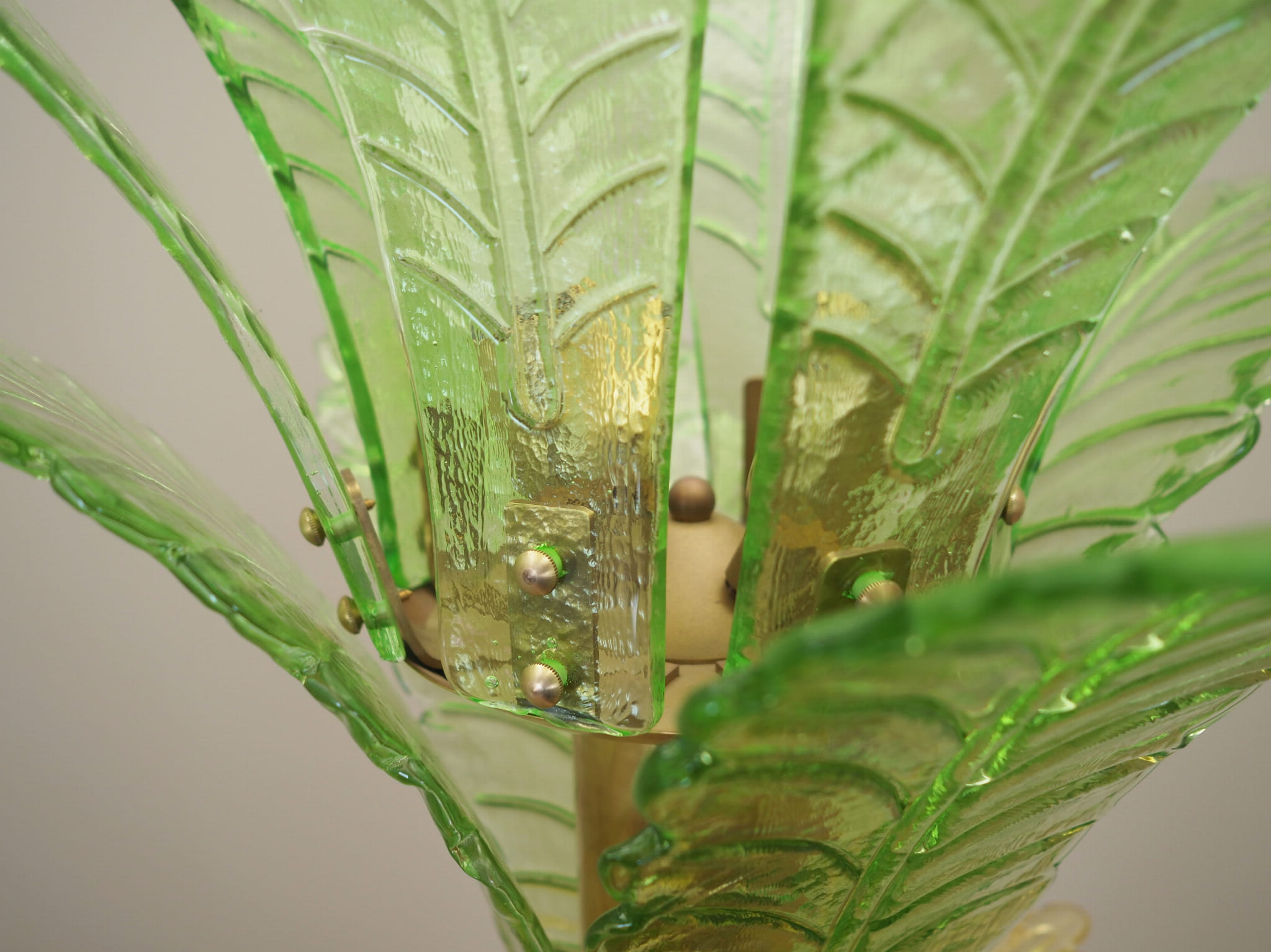 The lamp is made of brass and Murano glass in yellow and green. The unique construction is not only a design element, its main purpose is to diffuse light to create a pleasant interior mood.