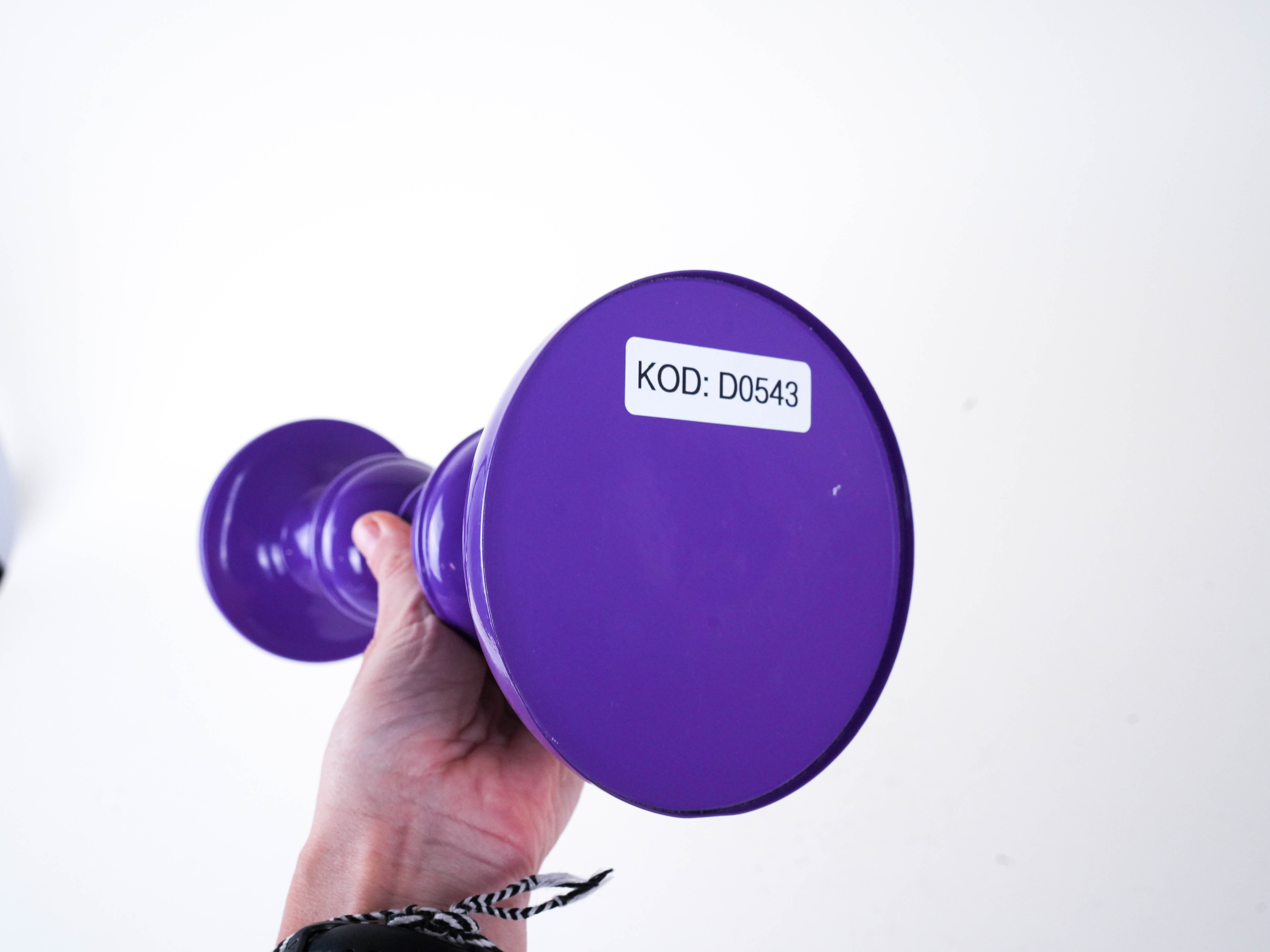Purple metal candlestick, Danish design, 1970s, made in Denmark