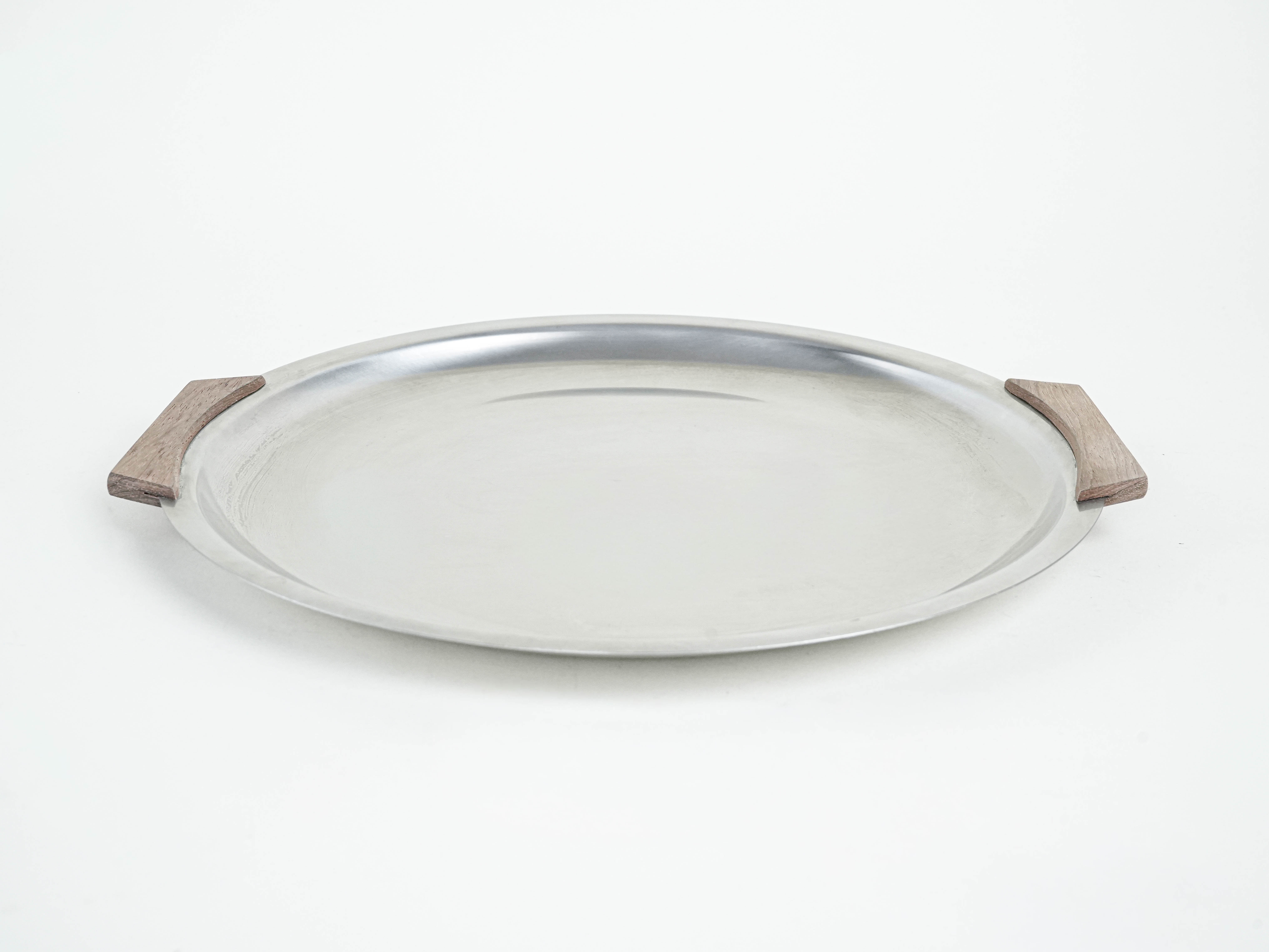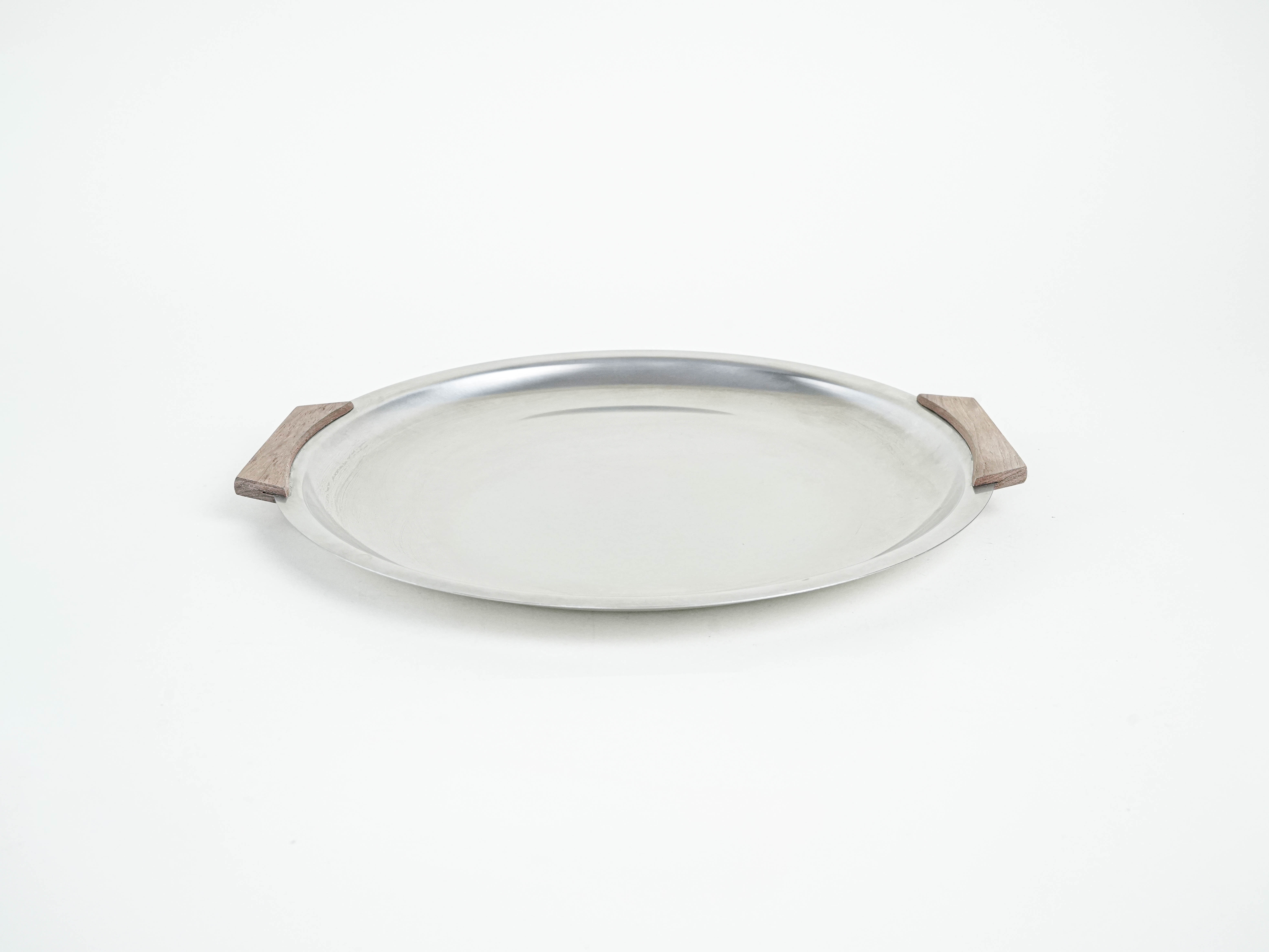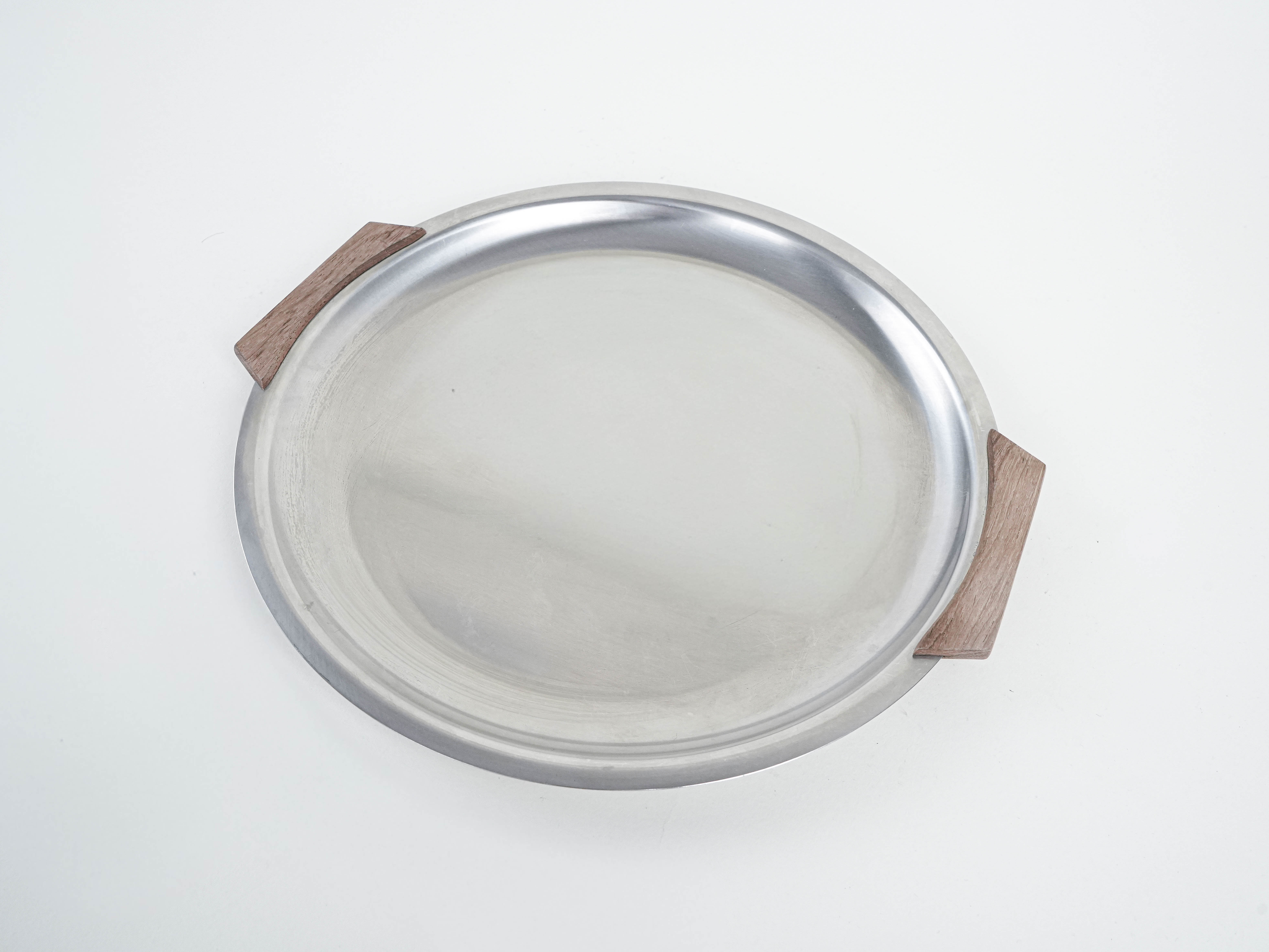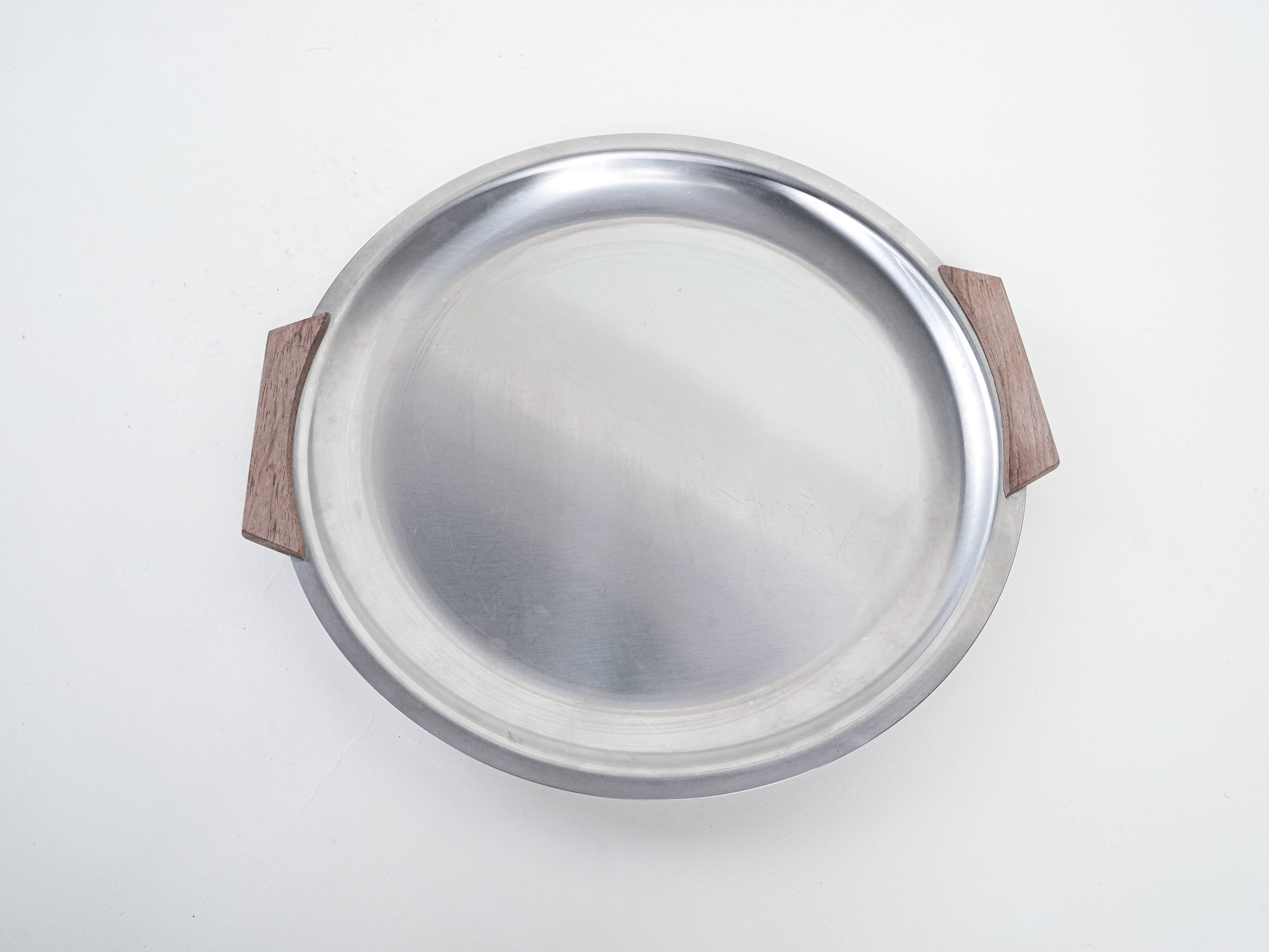 Round stainless steel tray, Danish design, 1970s, made in Denmark