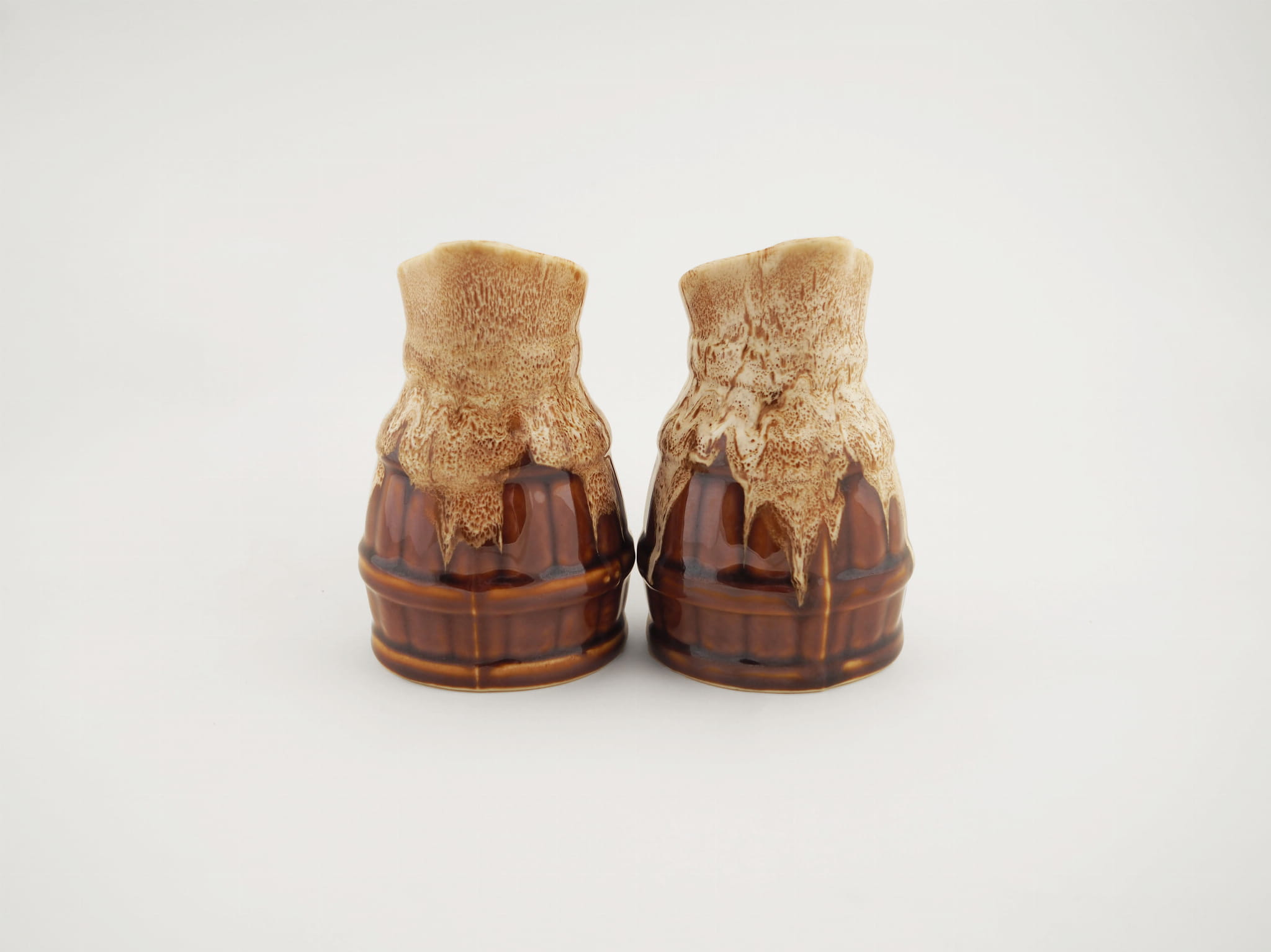 Made of ceramic in brown and beige. It is a perfect complement to the decoration of a living room, kitchen or dining room. The price is for a set of two pieces.
