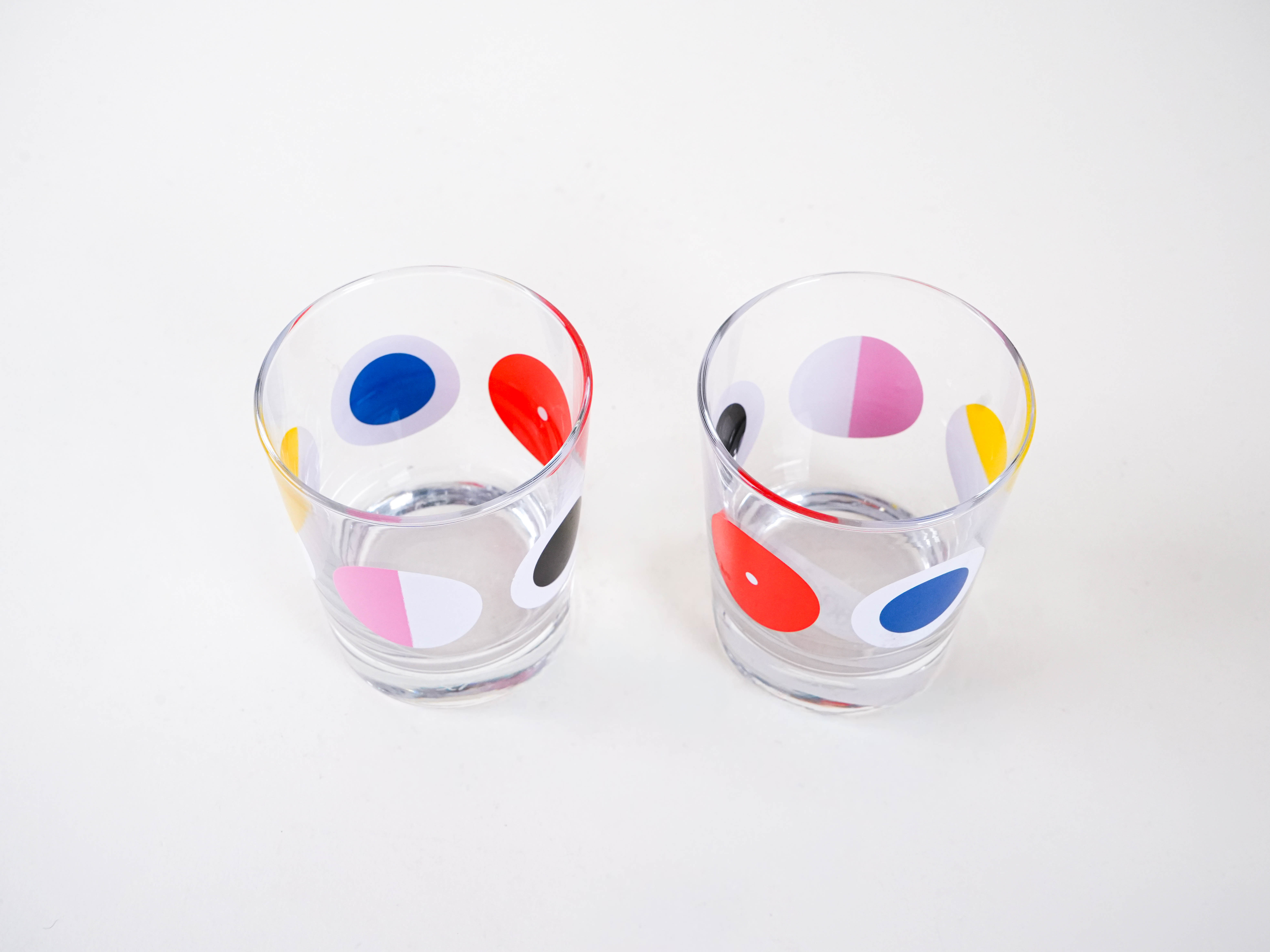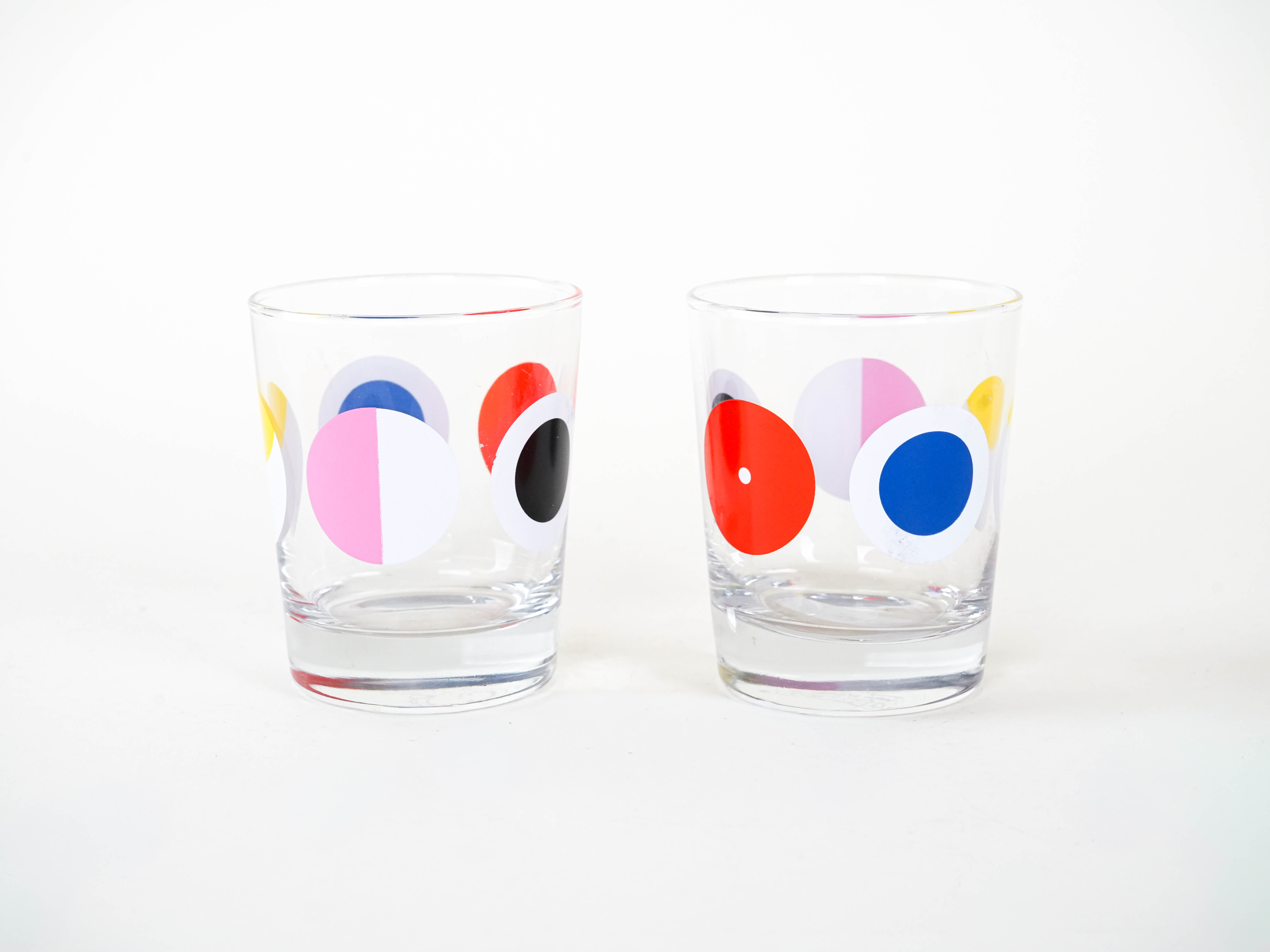 Vintage IKEA glasses featuring a colourful, geometric polka-dot pattern – an icon of 1980s and 1990s style. Perfect for serving drinks, they are also a fine example of the Scandinavian brand’s timeless design. They will add a touch of energy and retro charm to any table.