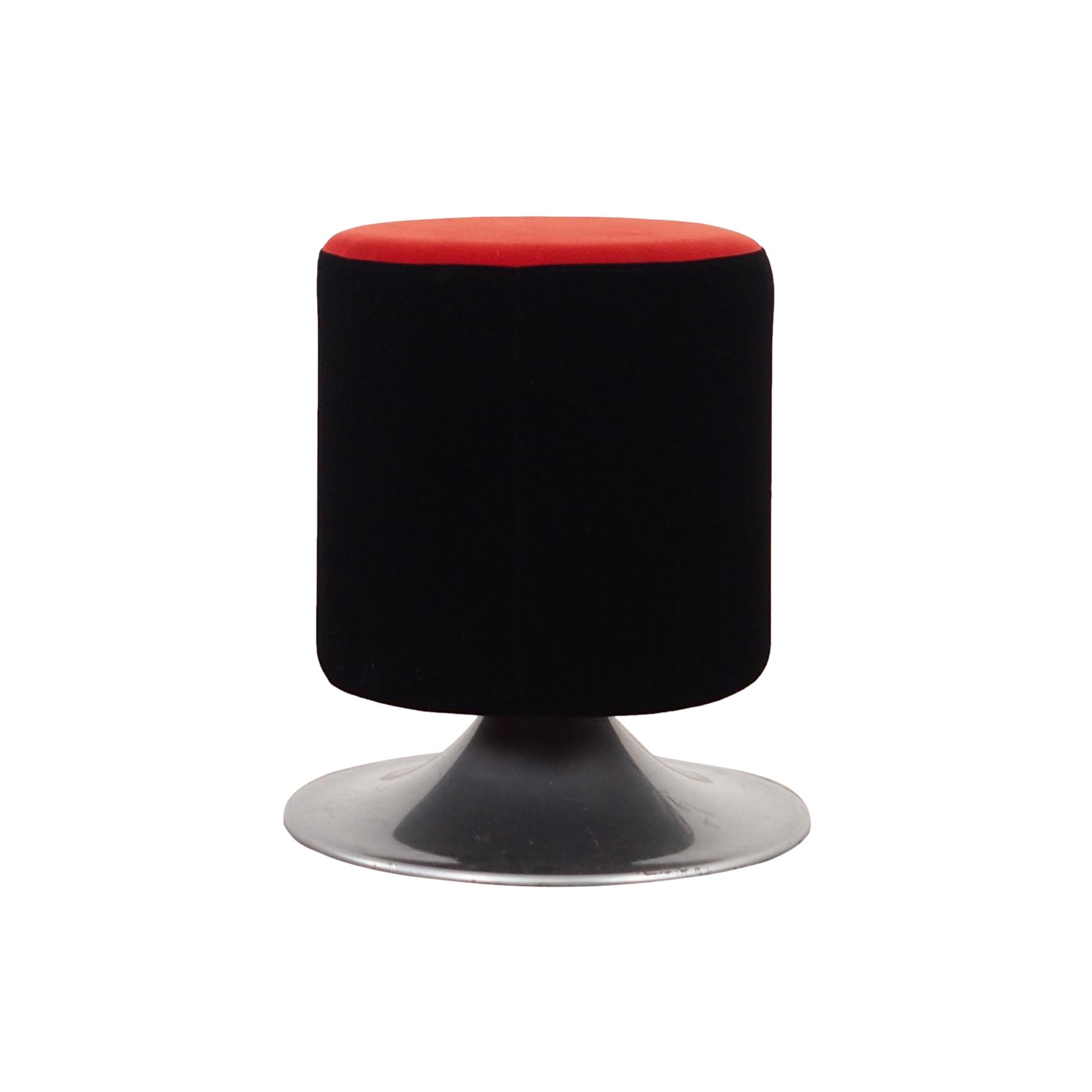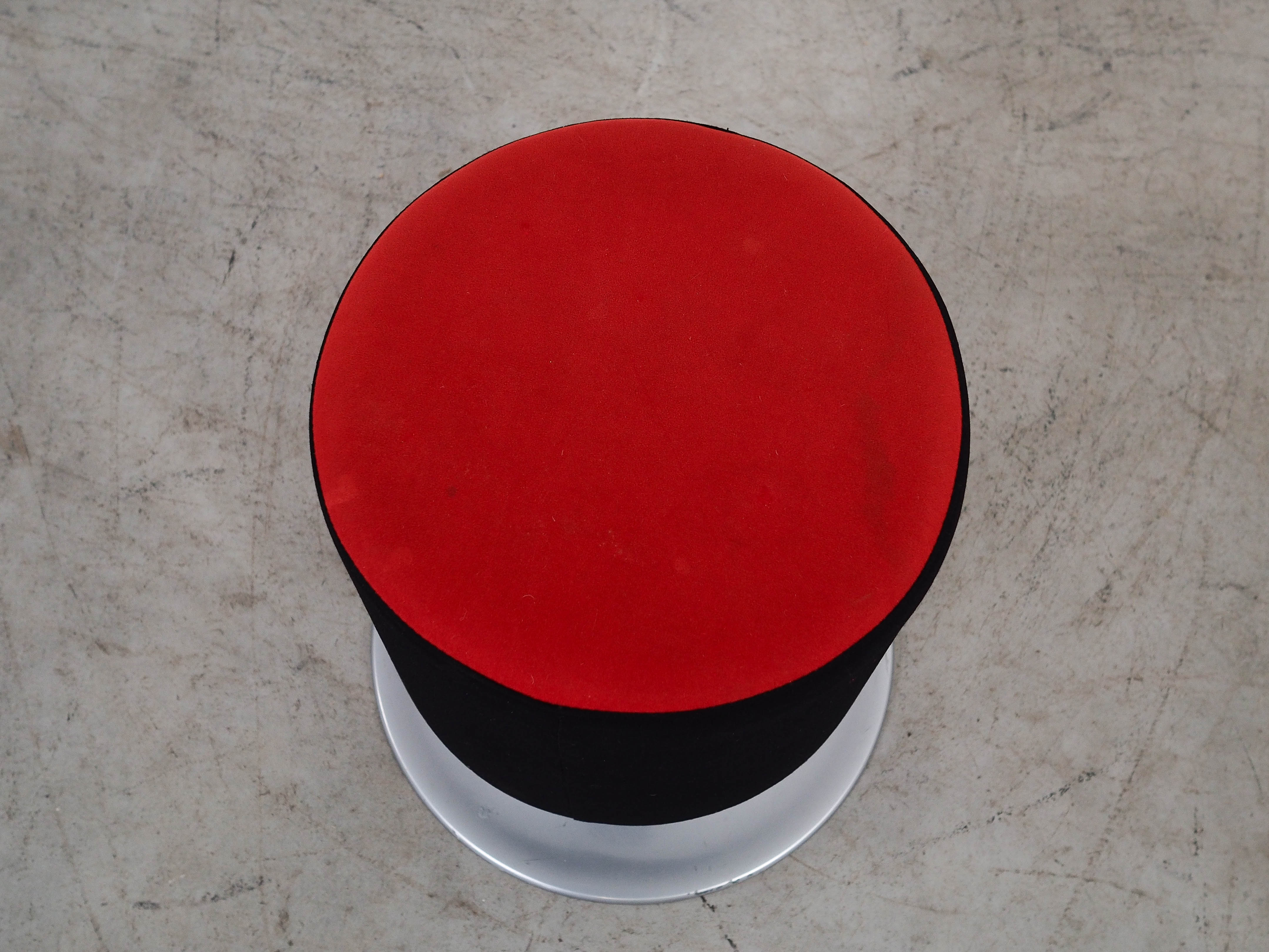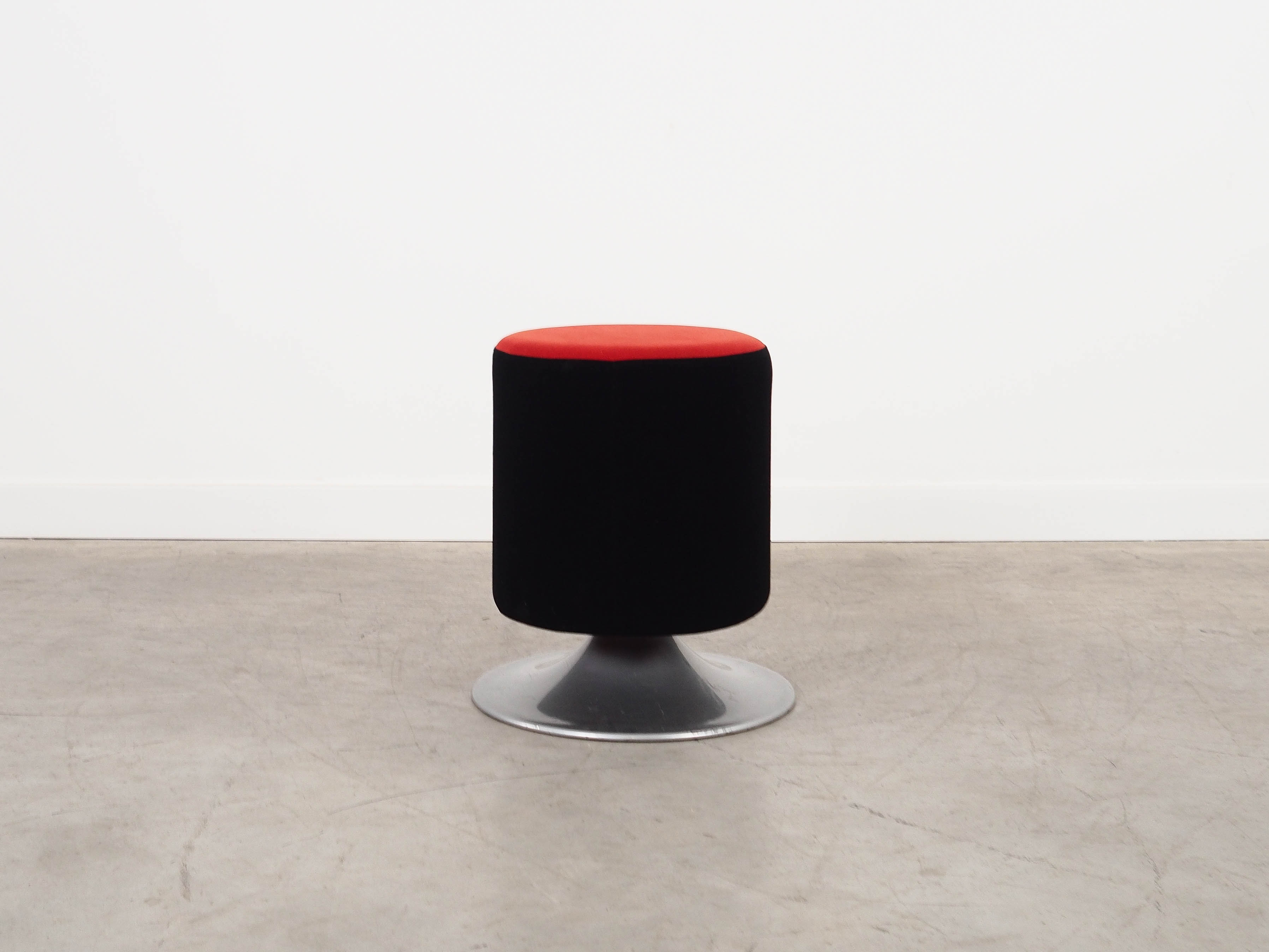 The frame is made of metal. The original upholstery has been preserved. The upholstery is made of high-quality fabric in black and red. Two pieces available. The price is for one piece. The photos show one of the available items—there may be differences due to age and use.