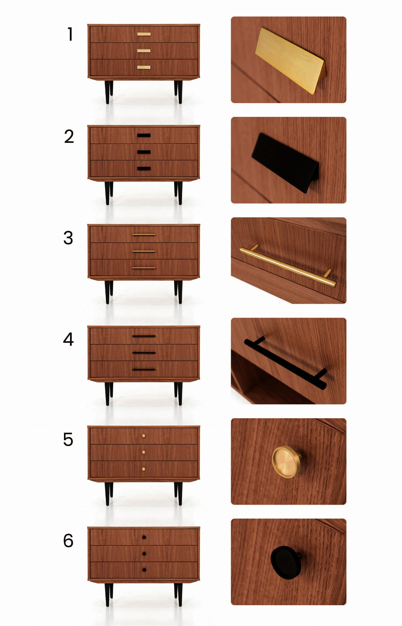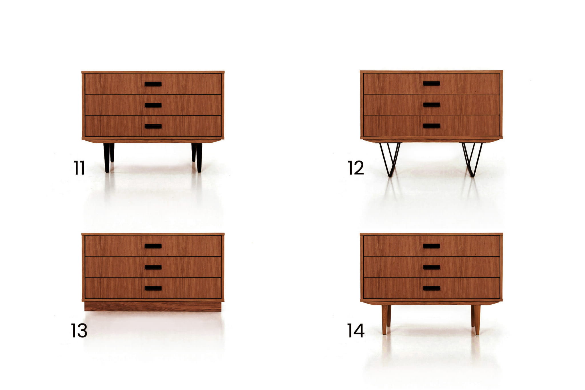 You can choose from four types of legs for this chest of drawers. Each of them differs in height. All variants are shown in one of the photos.
