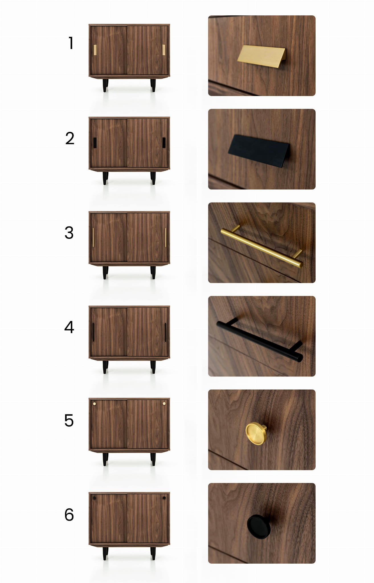 You can choose between two types of legs for this chest of drawers. Each of them differs in height. All variants are shown in one of the photos.
