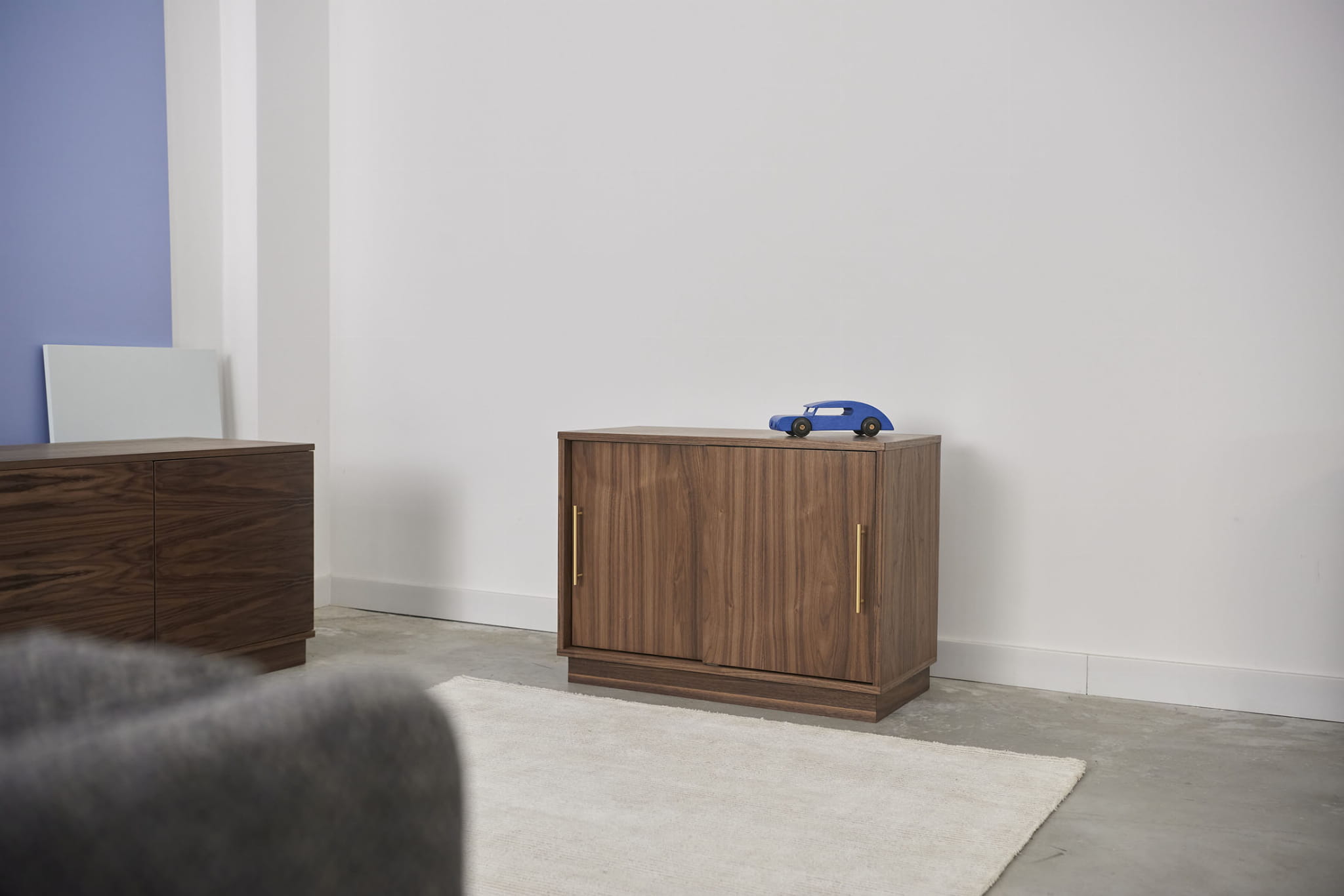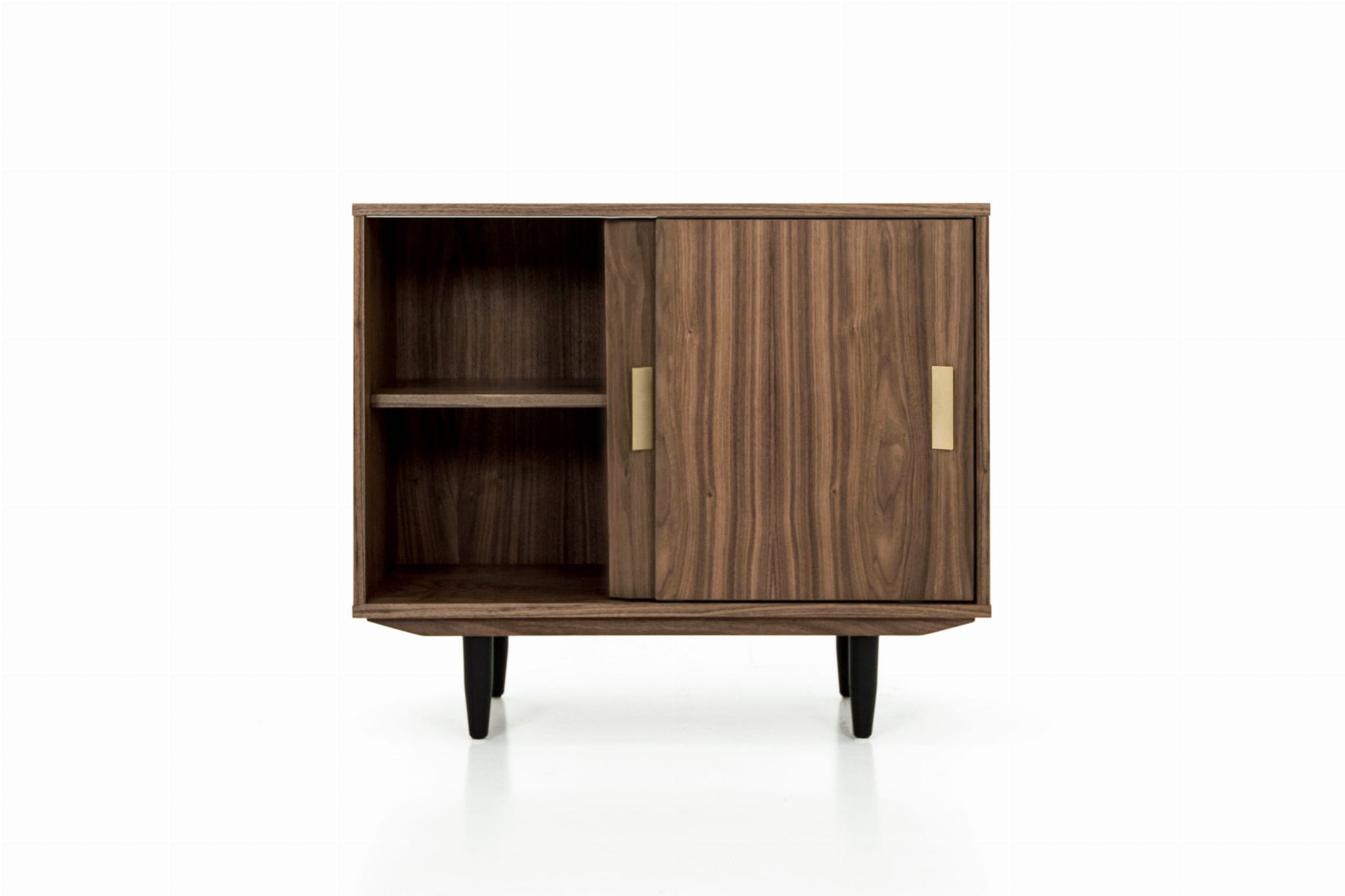 This is a compact cabinet that impresses with its beautiful, symmetrical form. Its fronts are formed by two pairs of sliding doors, which close exceptionally smoothly and quietly. The interior of the cabinet conceals a large space divided by a shelf, the position of which can be adjusted as required. For safety, the shelf is mounted on spoon supports that prevent it from being accidentally pulled out.