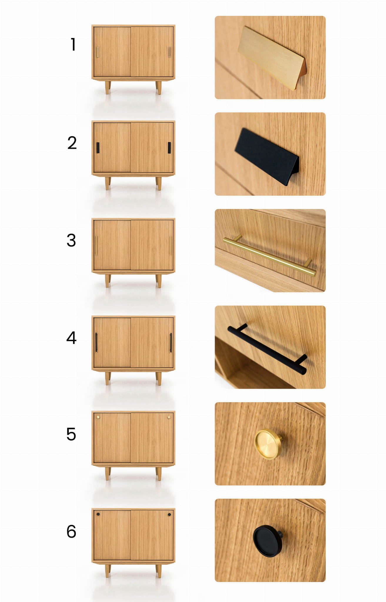 You can choose from three types of legs for this chest of drawers. Each of them differs in height. All variants are shown in one of the photos.