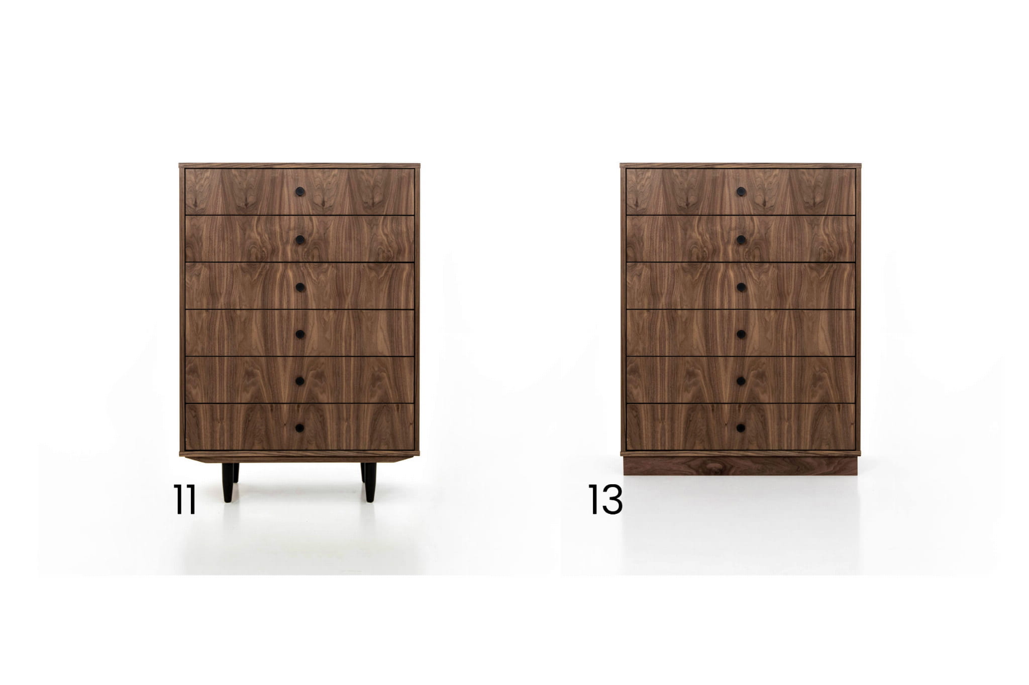 You can choose between two types of legs for this chest of drawers. Each of them differs in height. All variants are shown in one of the photos.