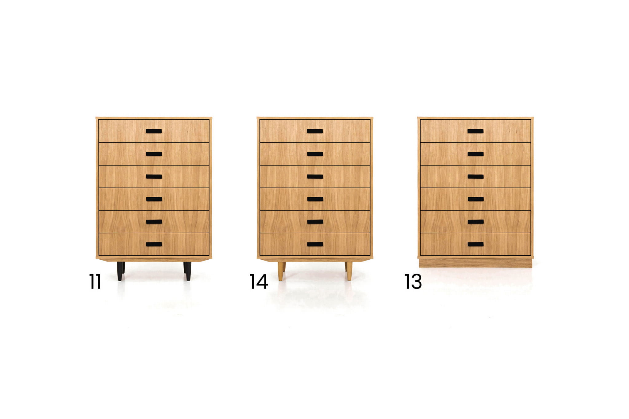 You can choose from three types of legs for this chest of drawers. Each of them differs in height. All variants are shown in one of the photos.