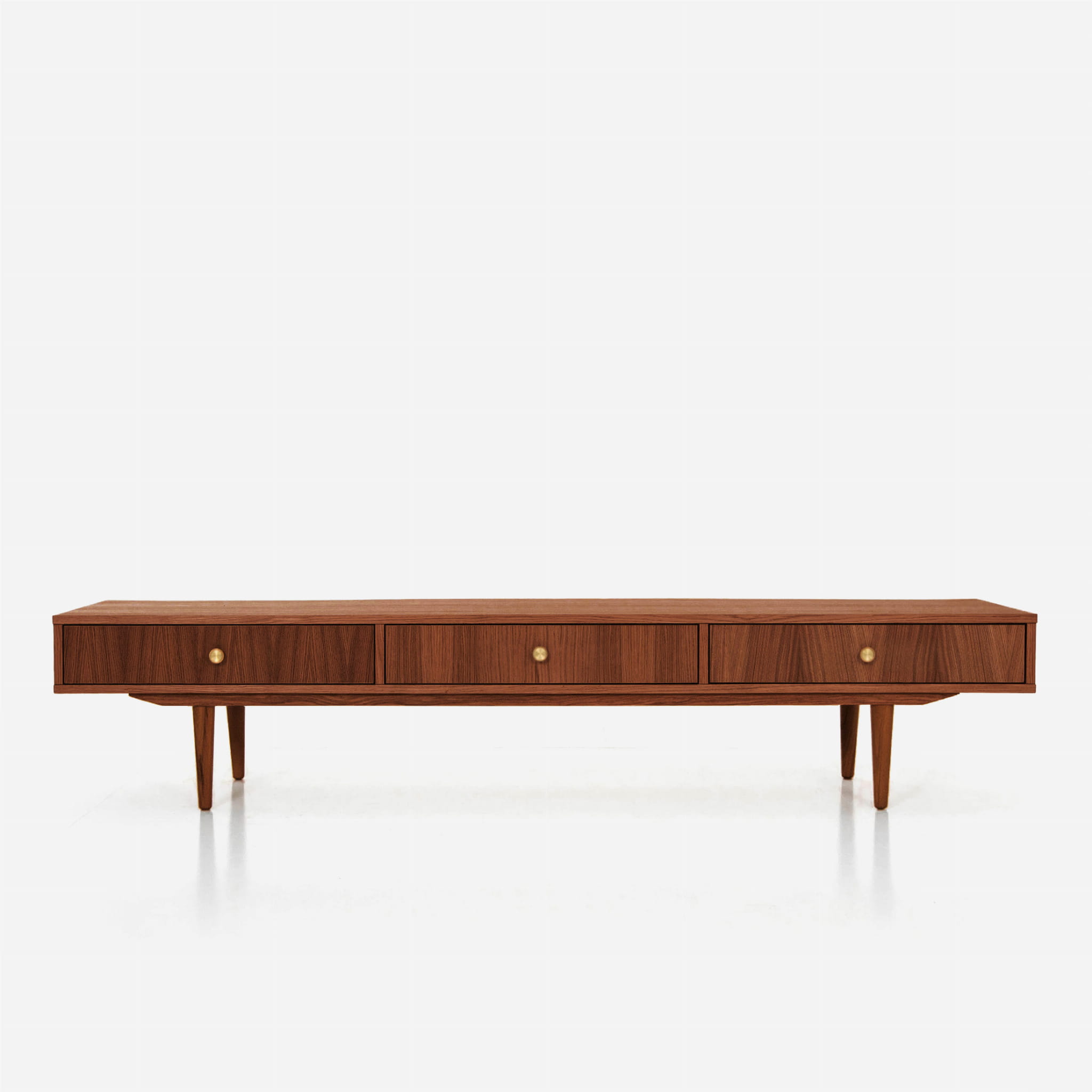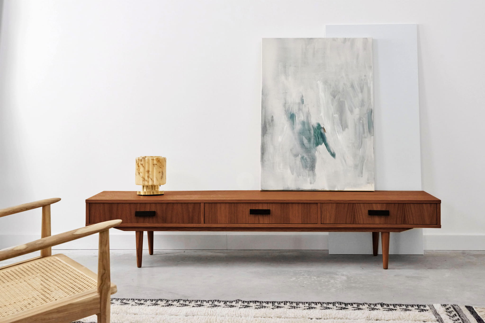 This stylish lowboard will go well in a home living room, in a study for work, but also in a stylish office. Our piece of furniture is equipped with three drawers, which we mounted on concealed runners. Thanks to it, opening and closing the drawers is a very light and extremely quiet process.