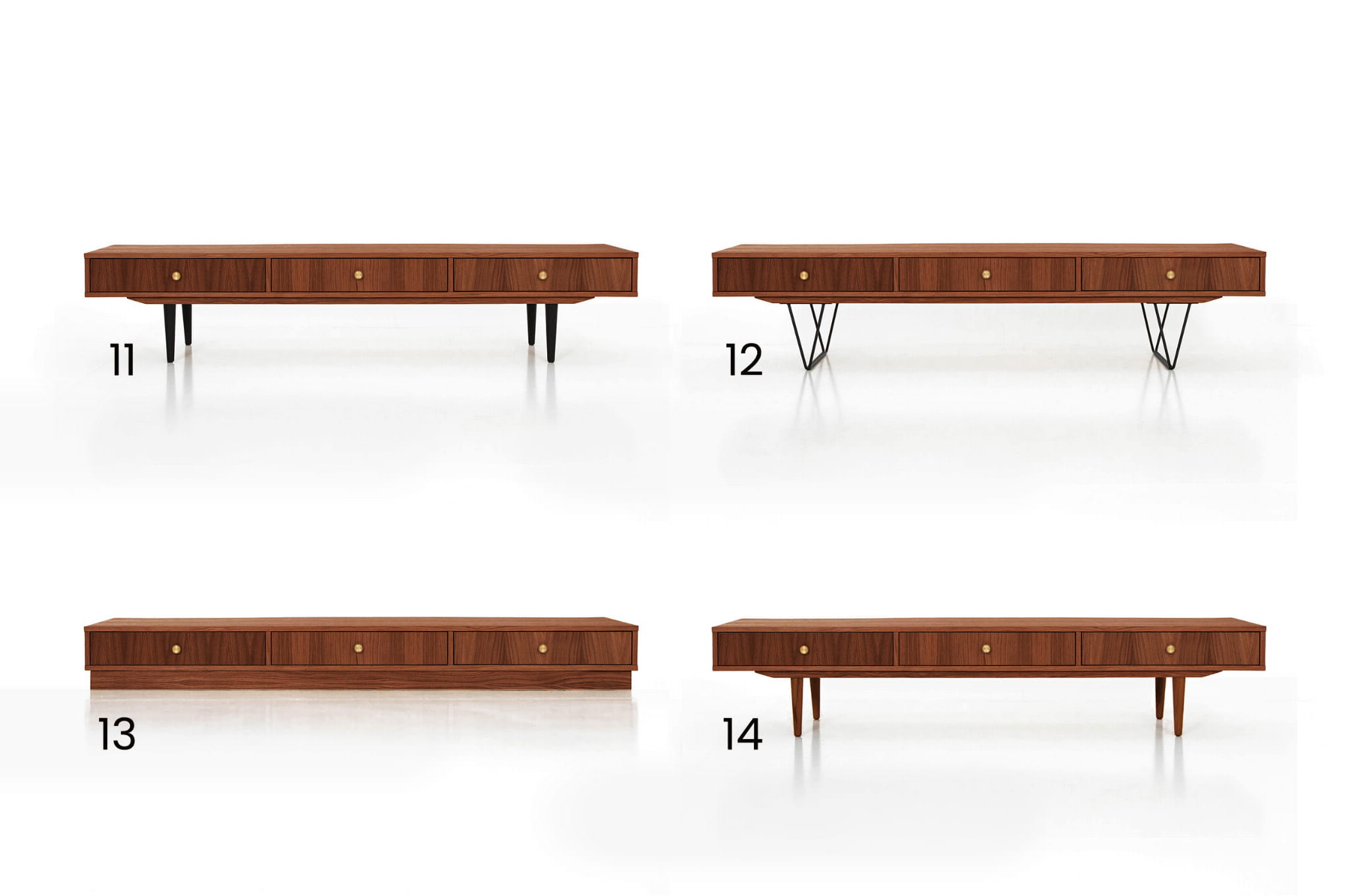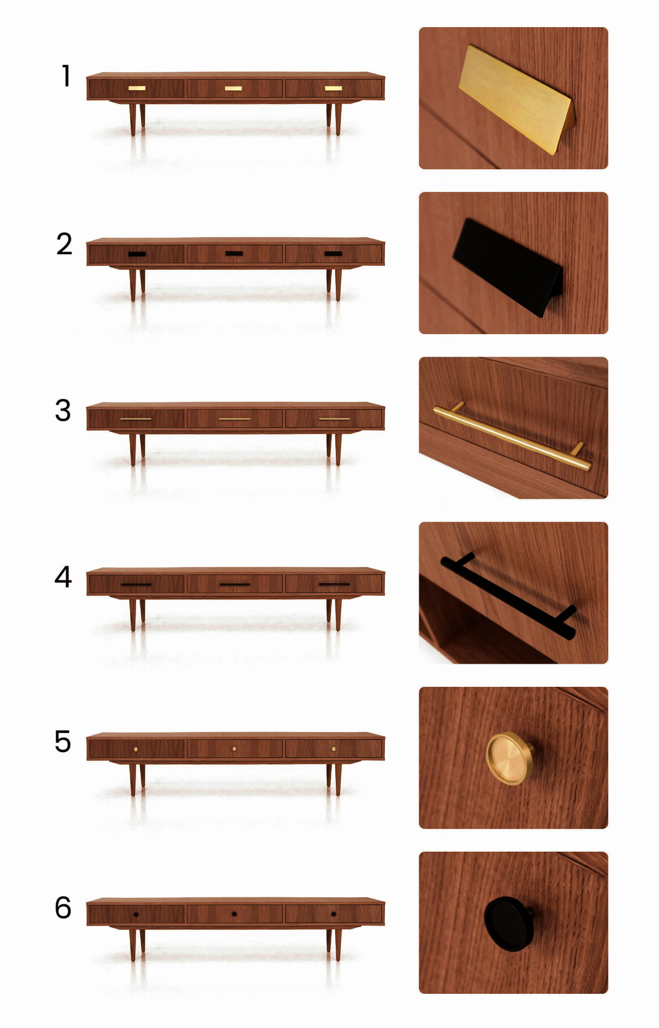 For this chest of drawers you can choose from four types of legs. Each of them differs in height. All variants are shown in one of the photos.
