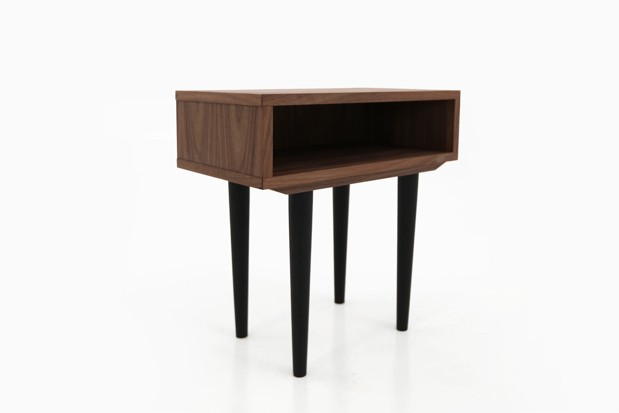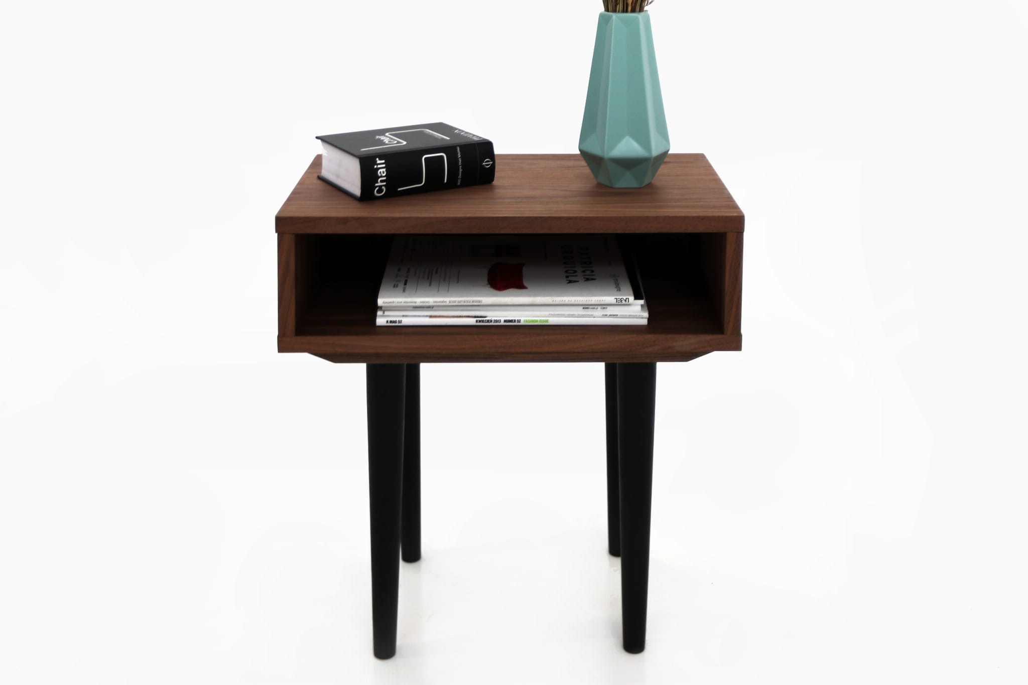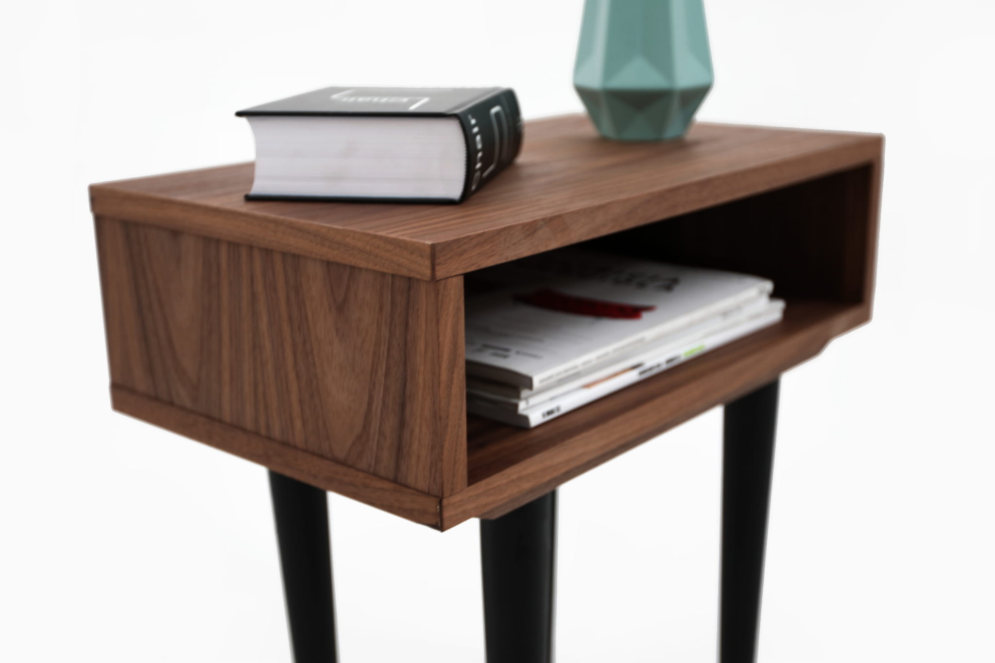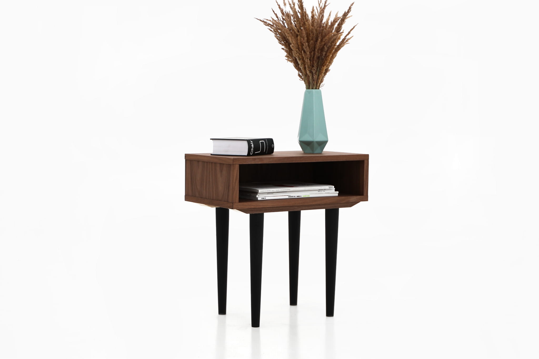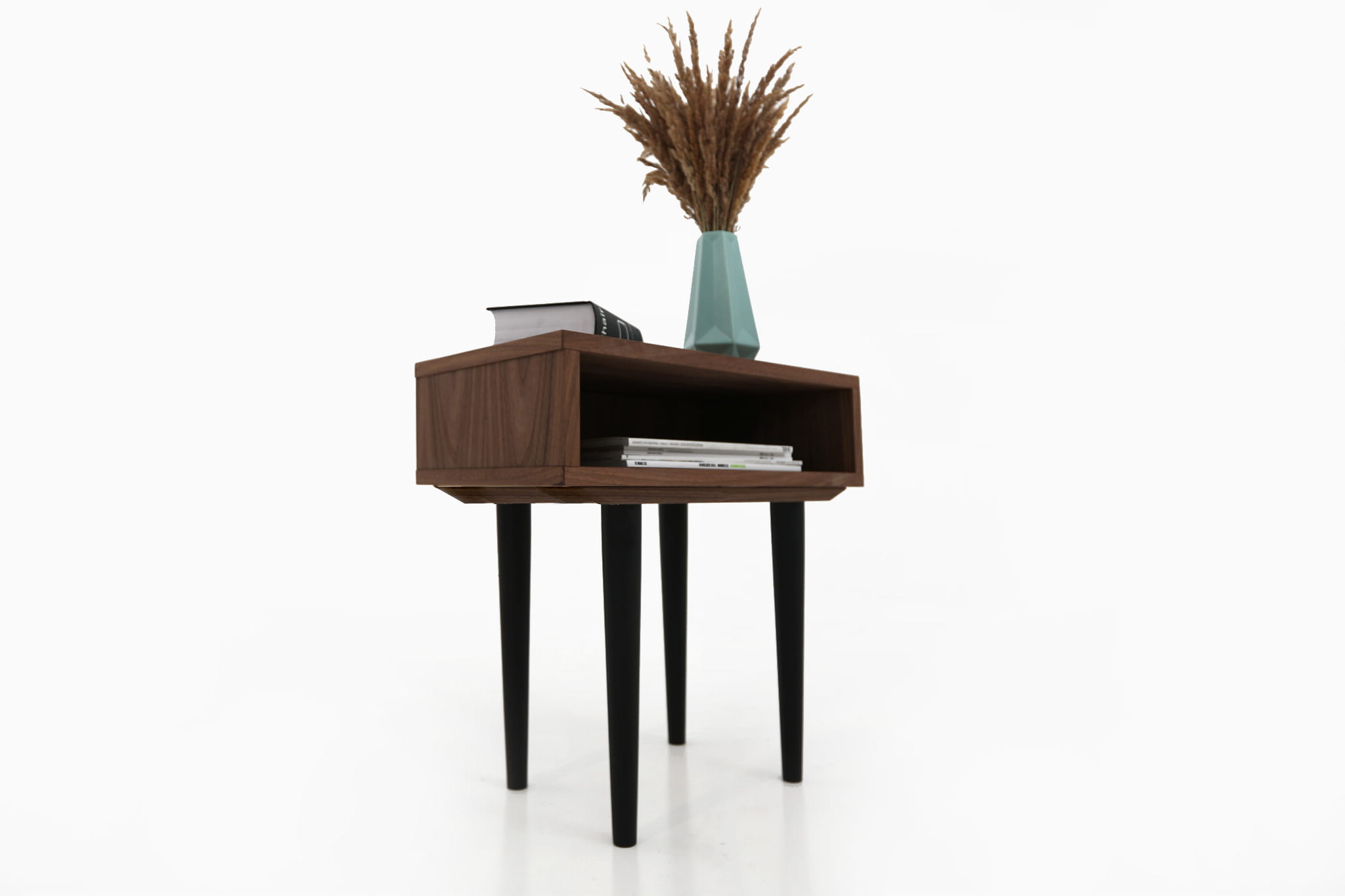 This model, delightful in form, performs well as a bedside table. It has a practical open space where you can comfortably store your phone or evening reading to be read.
