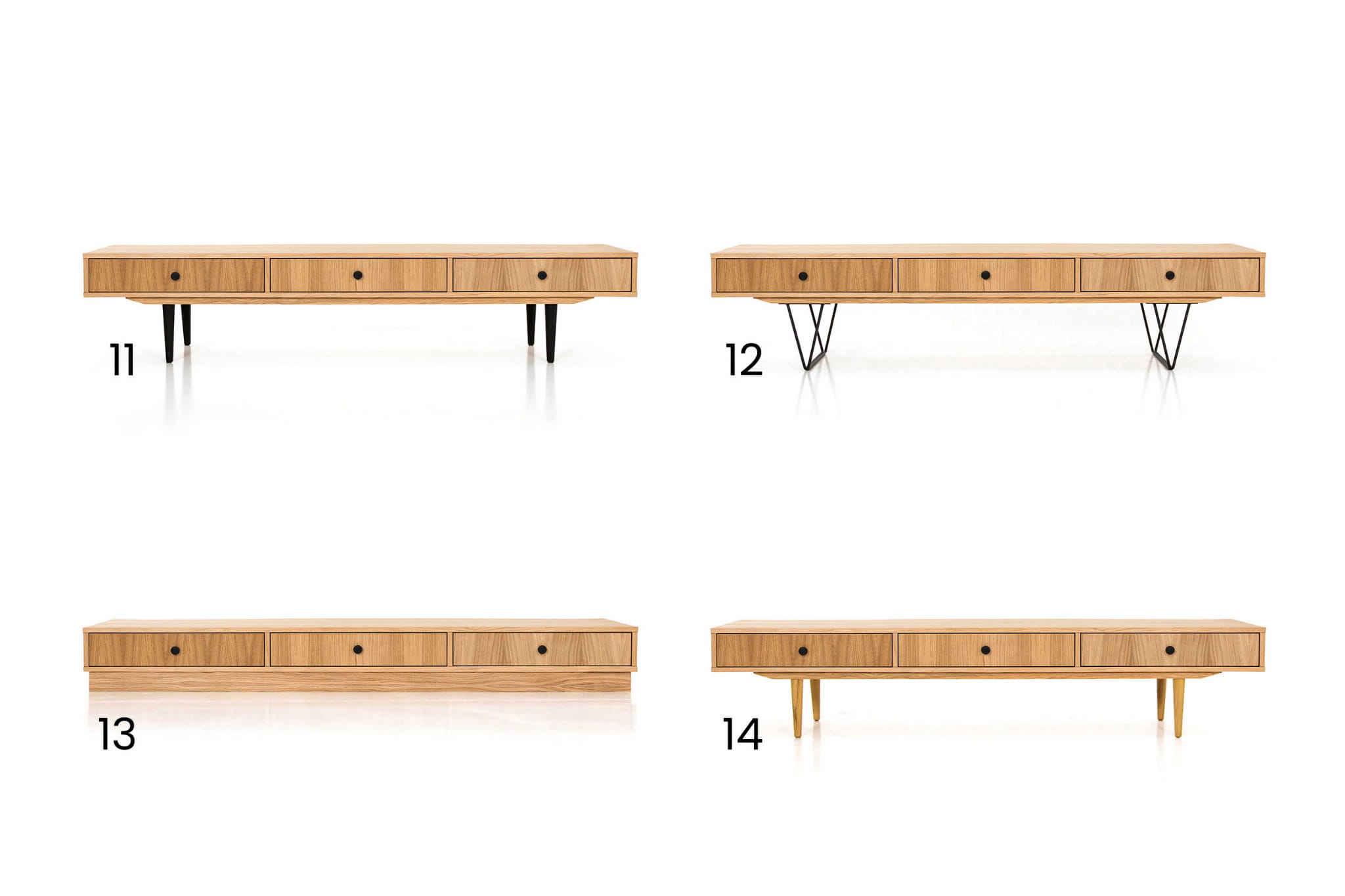 For this chest of drawers you can choose from four types of legs. Each of them differs in height. All variants are shown in one of the photos.