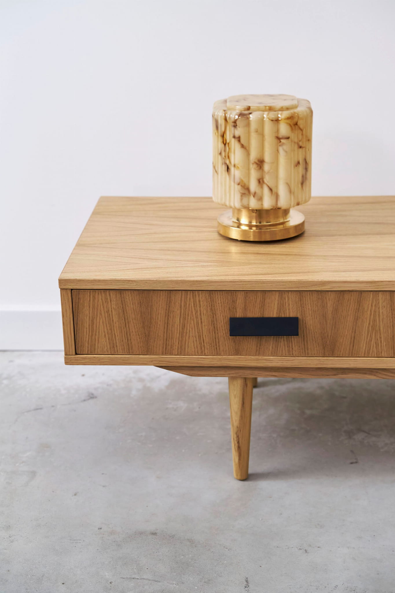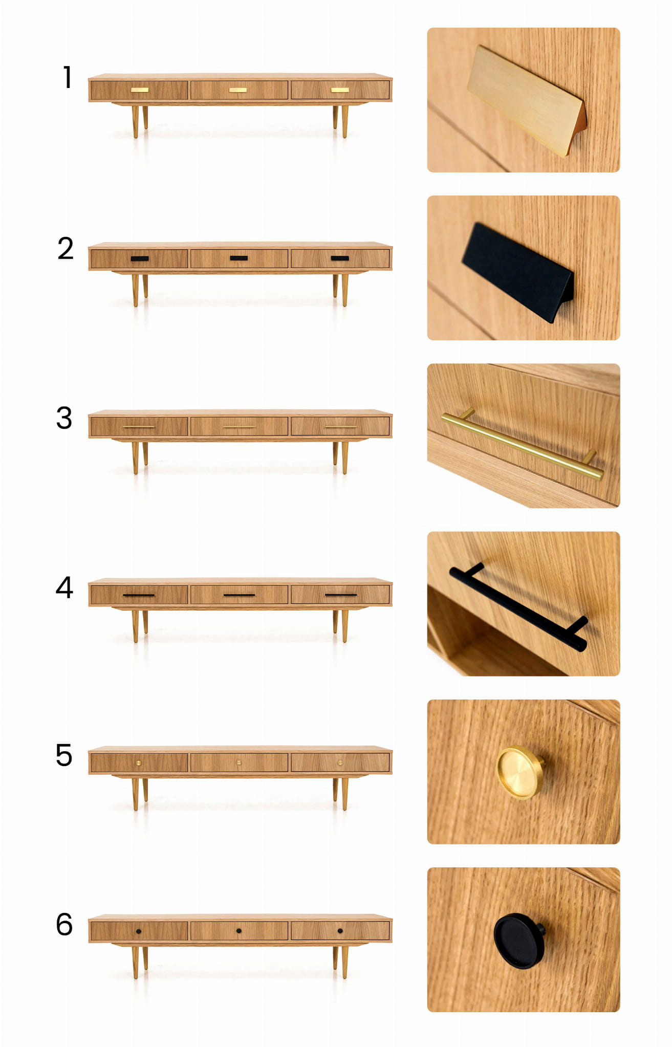 - legs: your choice (wooden, steel or veneer base) handles: brass