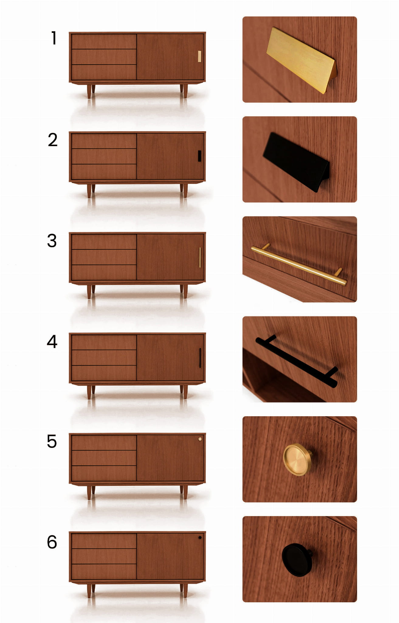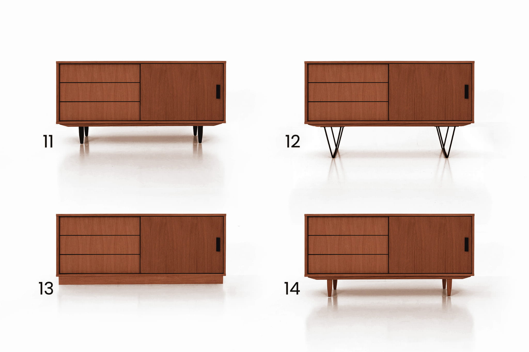 For this chest of drawers, you can select one of four types of legs. Each of them differs in height. All variants are shown in one of the photos.