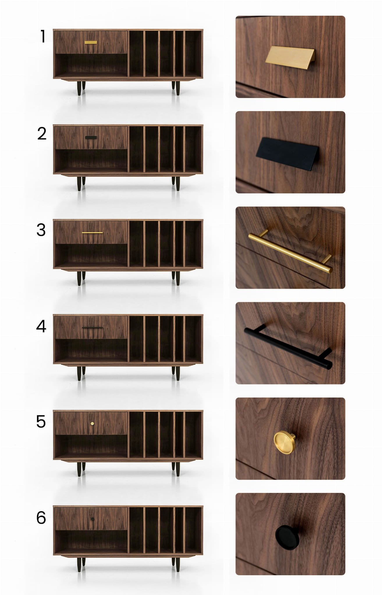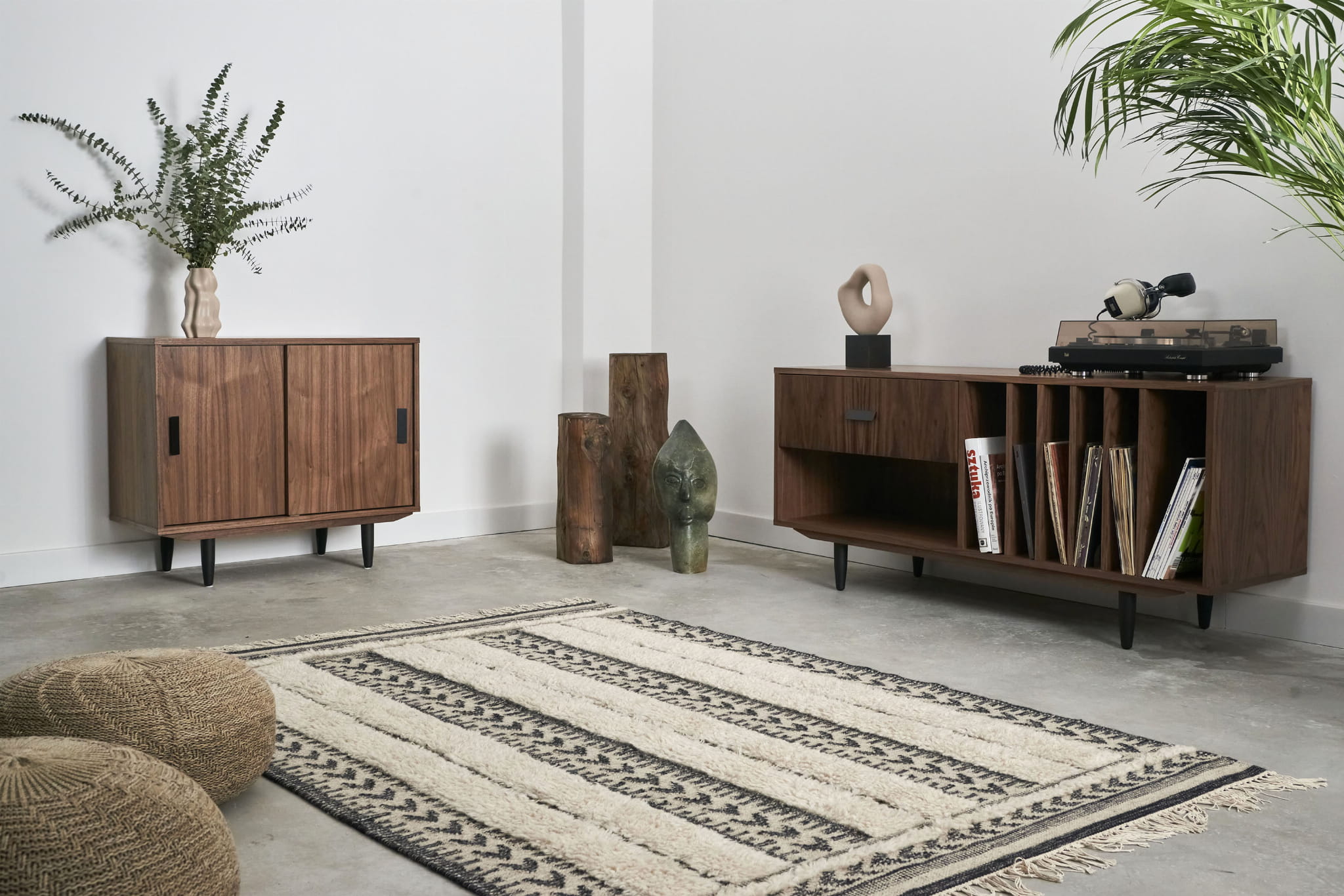 The rest of the cabinet is made up of stylish slide-in dividers adjustable in 5 cm increments to store your vinyl collection, favourite magazines or books.
