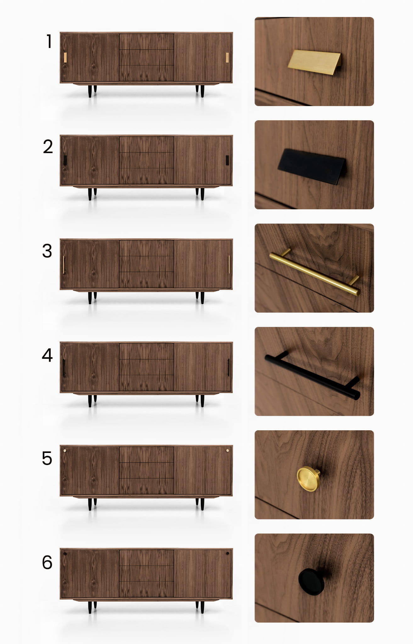 For this chest of drawers, you can select one of three types of legs. Each of them differs in height. All variants are shown in one of the photos.