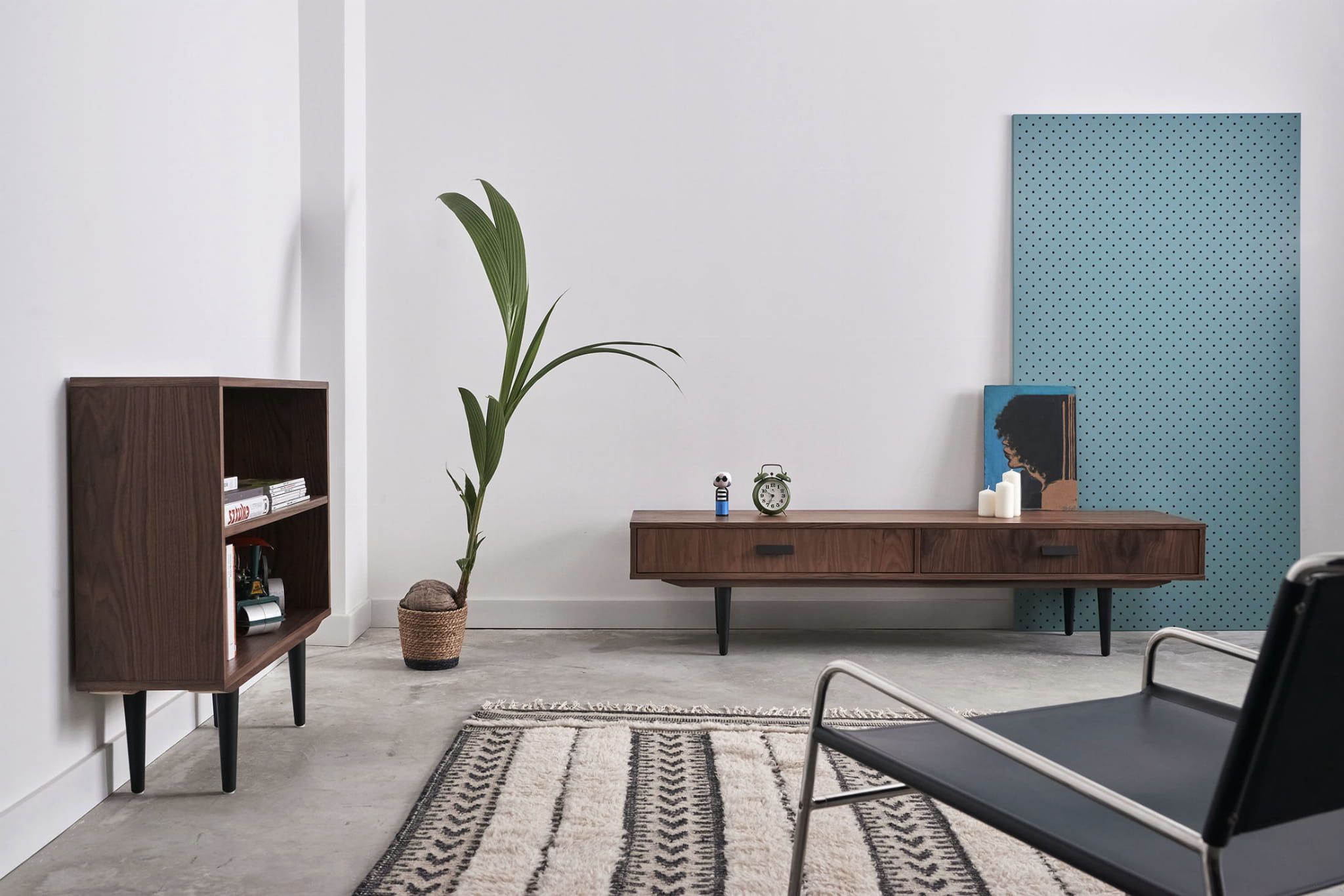 The second lowboard in the LIVLO range, like its companion, brings to mind the legendary models of Scandinavian design of the 1960s. Our piece of furniture is equipped with two drawers, which we mounted on Blum concealed runners with the Blumotion system. Thanks to this system, opening and closing the drawers is a very light and extremely quiet process.
