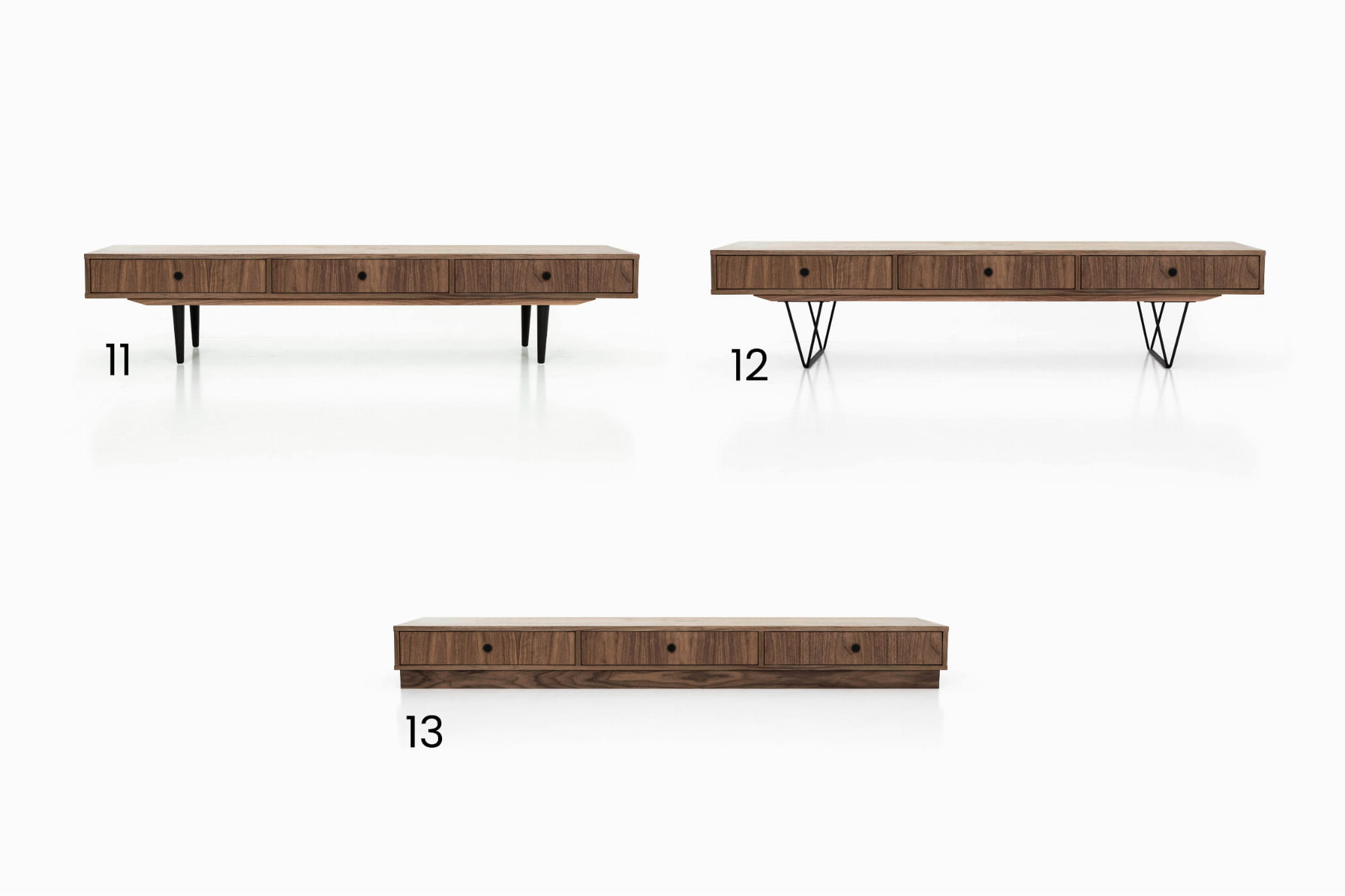Walnut lowboard 3 drawers - L01