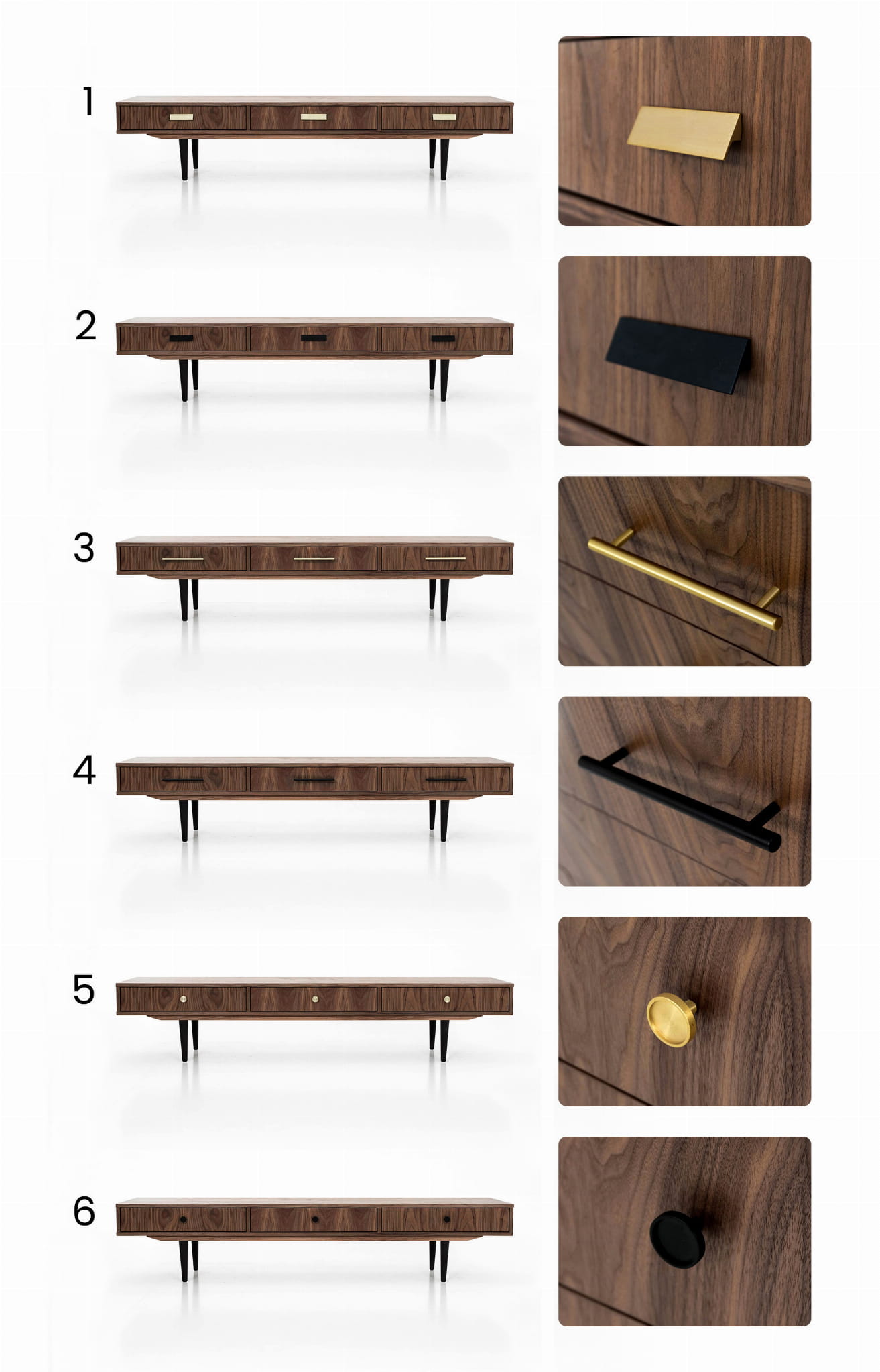 3 types of legs to choose from