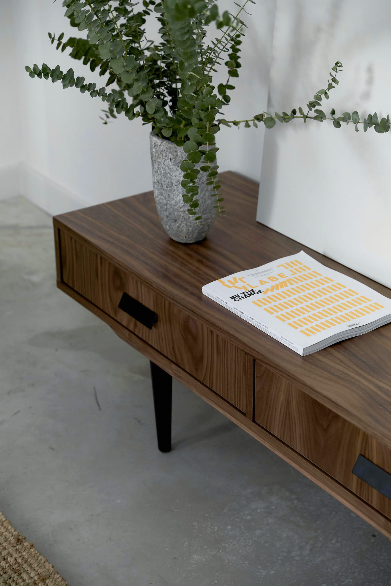 This stylish lowboard will be perfect in a home living room, in a study for work, but also in a stylish office. Our piece of furniture is equipped with three pairs of drawers, which we mounted on Blum concealed runners. Thanks to it, opening and closing the drawers is a very light and extremely quiet process.