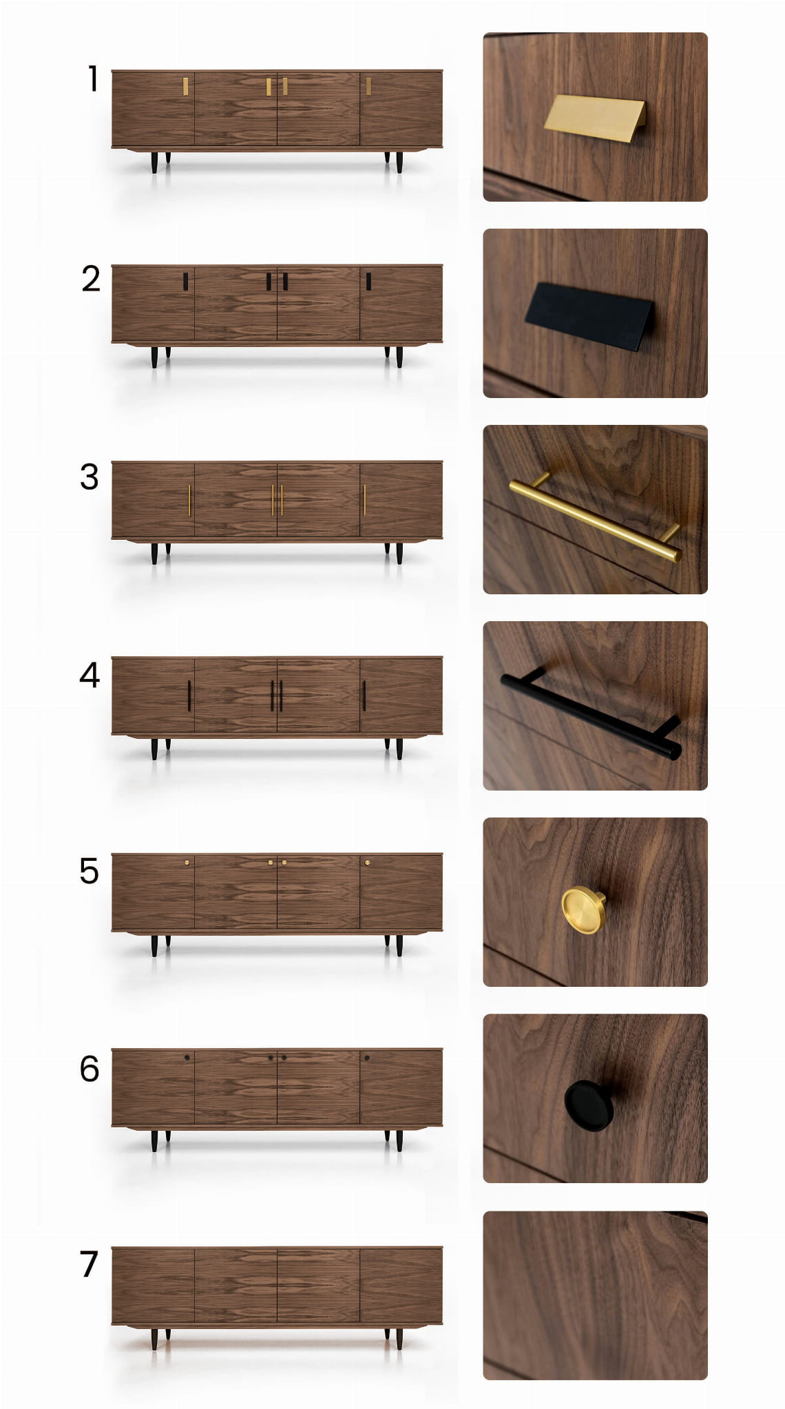 For this sideboard, you can select one of three types of legs. Each of them differs in height. All variants are shown in one of the photos.