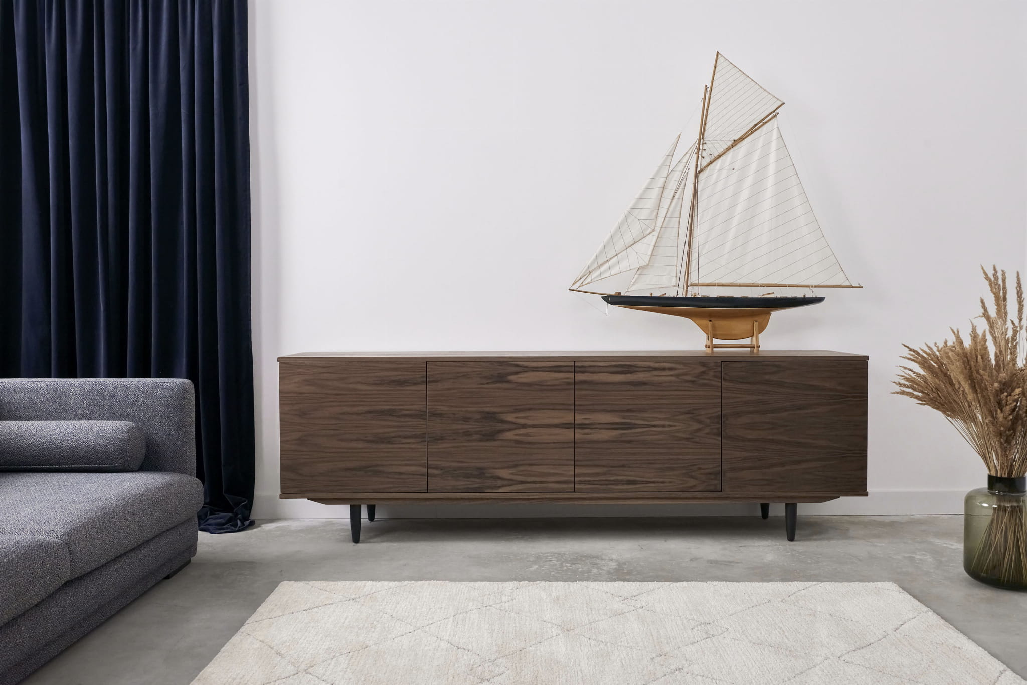 We can successfully call this model the quintessence of simple form. The fronts of our sideboard are cut "along the grain", so that they look as if they were made from a single piece of wood.