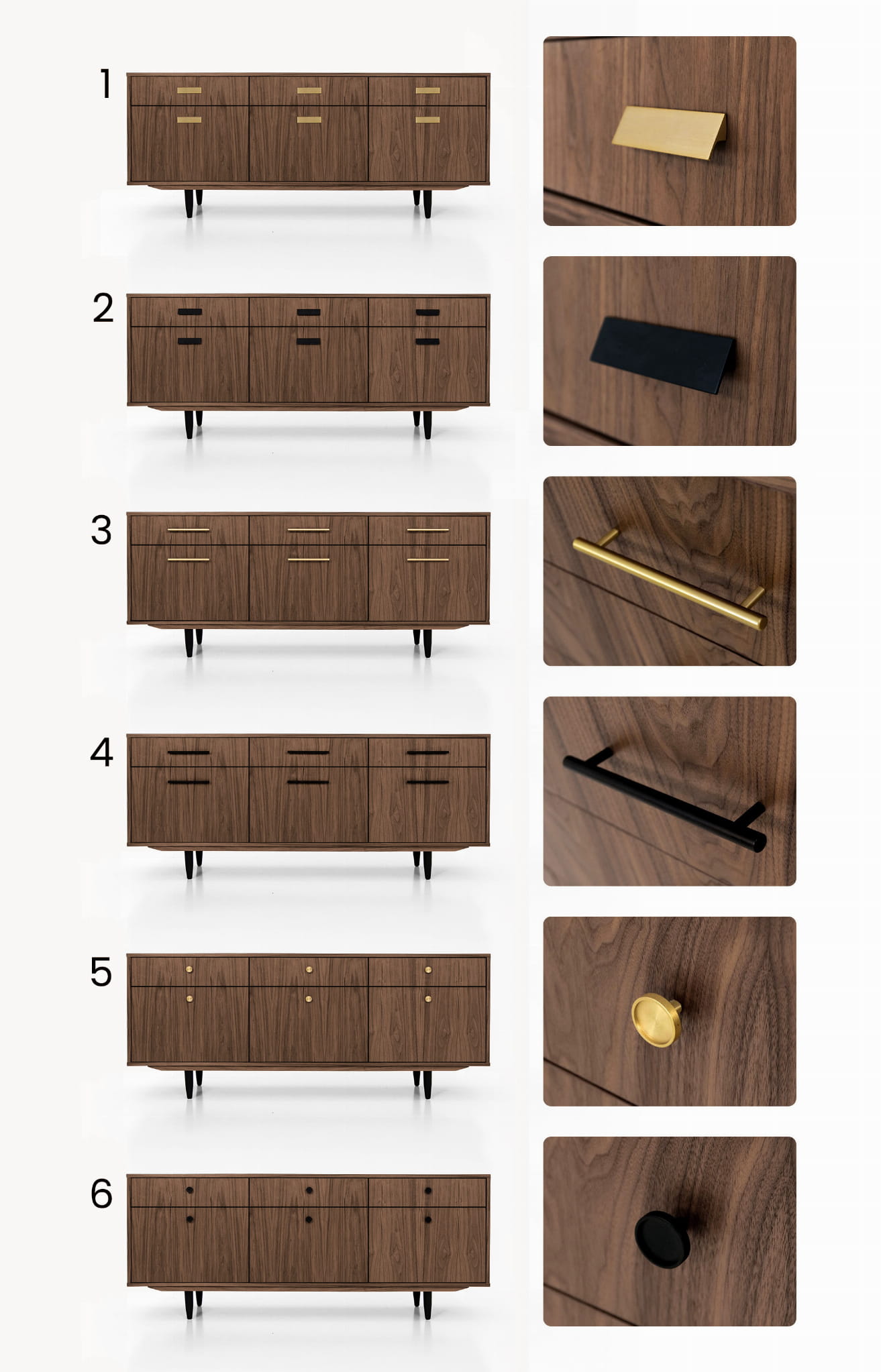For this chest of drawers, you can select one of three types of legs. Each of them differs in height. All variants are shown in one of the photos.